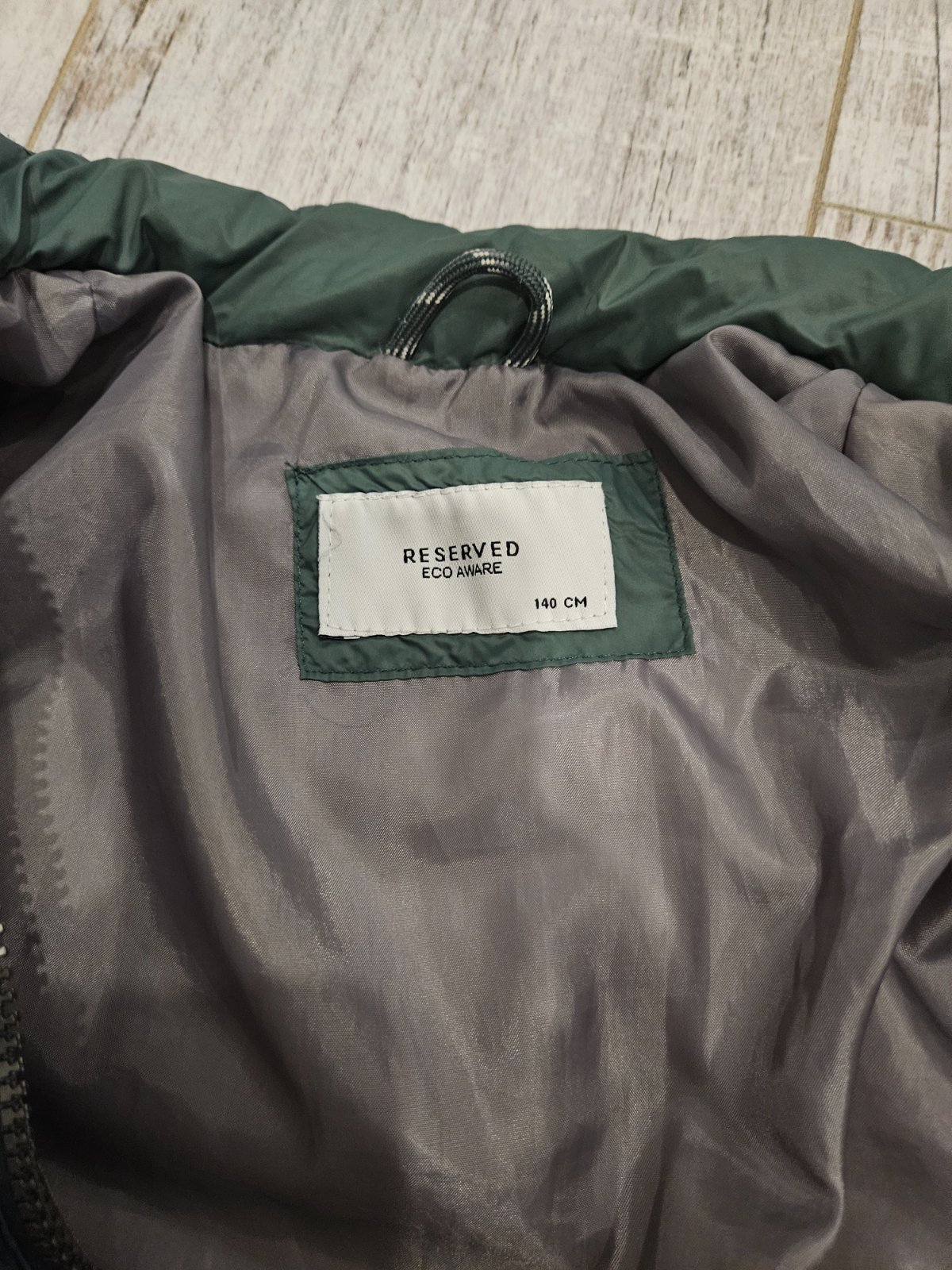 Chlapčenská bunda Bomber Vysoký stojačik Zapínanie na zips Dlhé rukávy Dve otvorené vrecká na prednom diele Manžety a nohavice s elastickým lemom Hladká podšívka Značka Reserved Modrá veľkosť 116,...