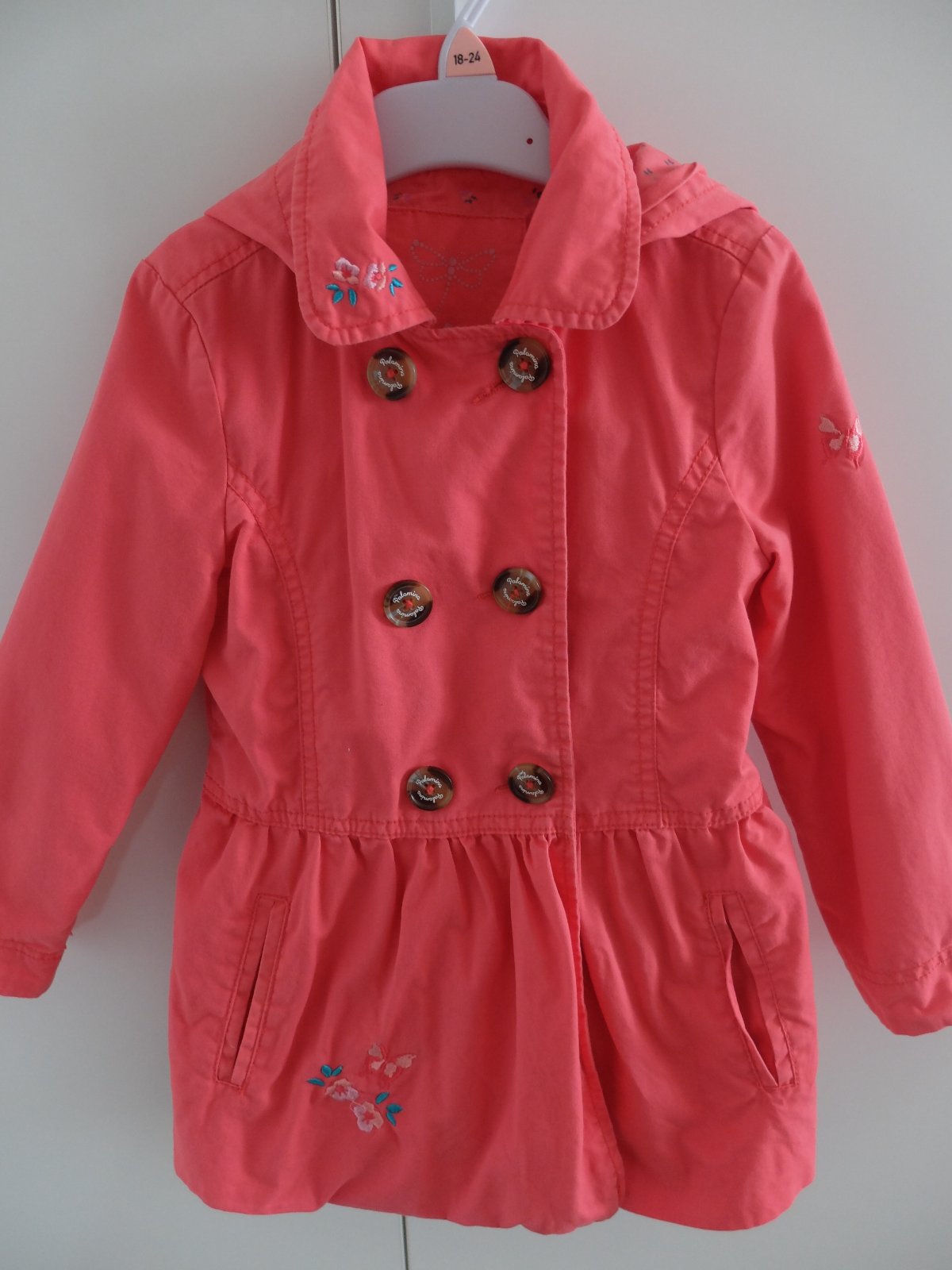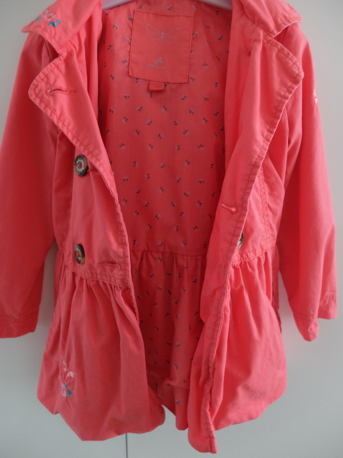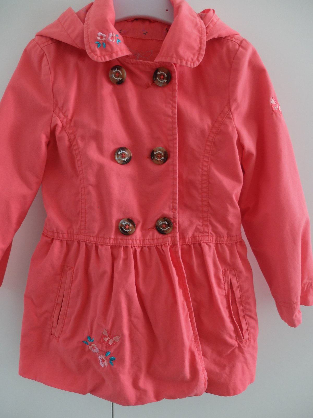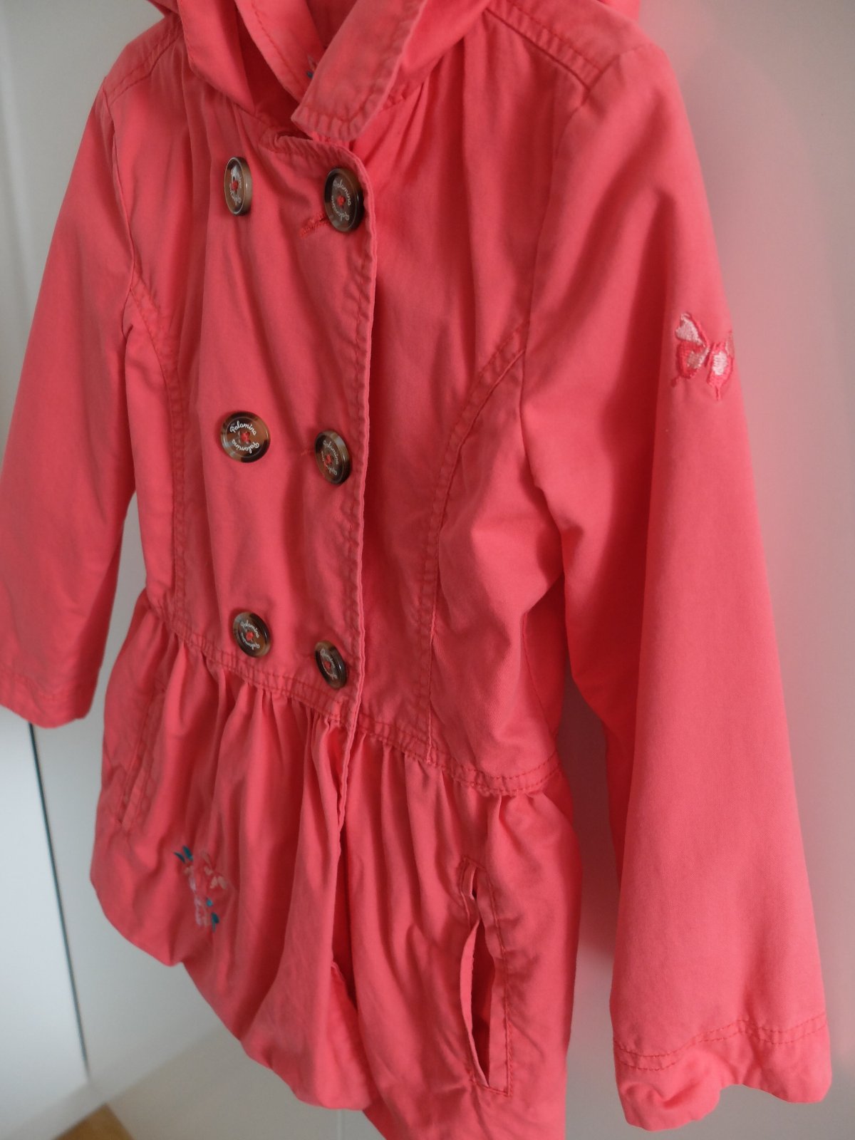 Kabatik je peknej staroruzovej farby, je velmi pekny, pekne ukaze, noseny prilezitostne, bez poskodeni. Velkost je uvedena 110, no je nositelny do 6, mozno 7rokov
