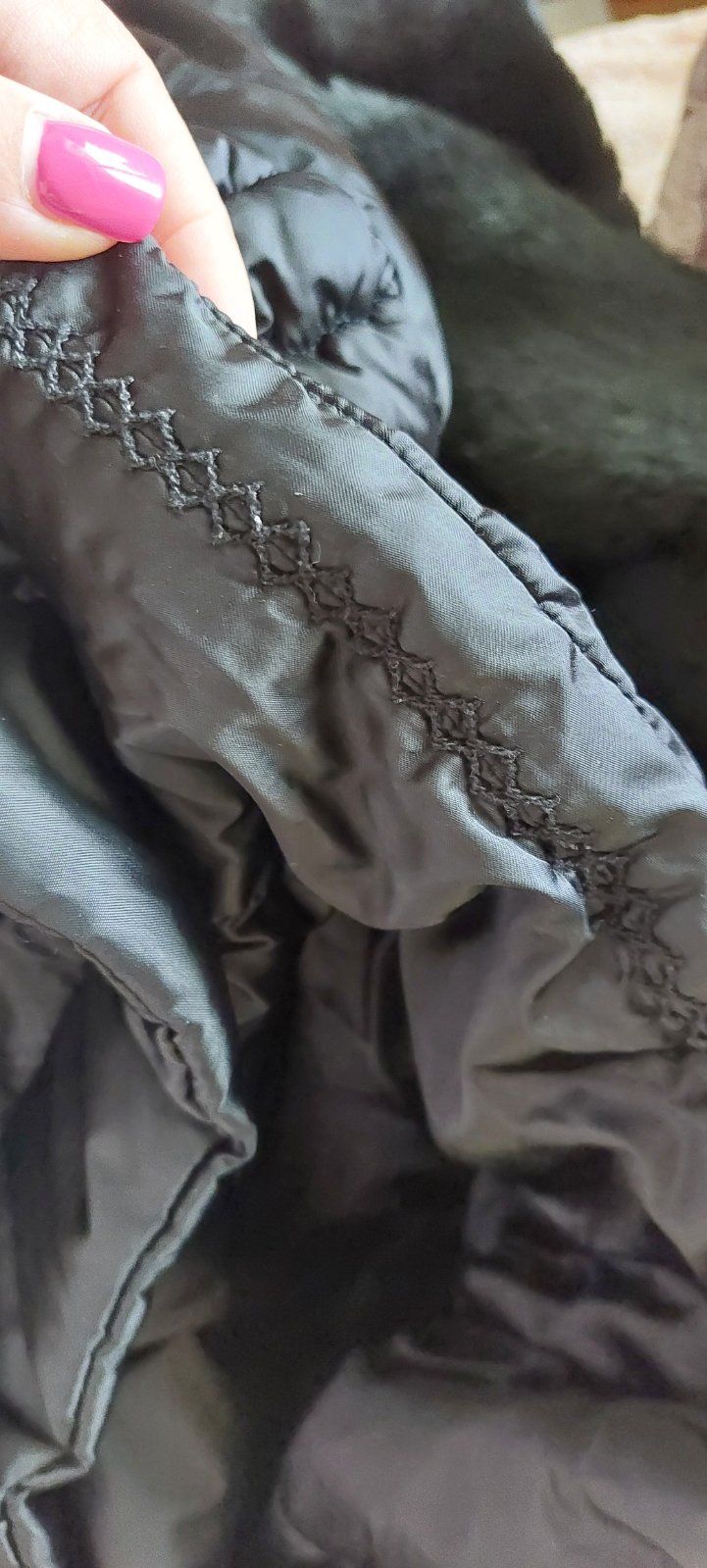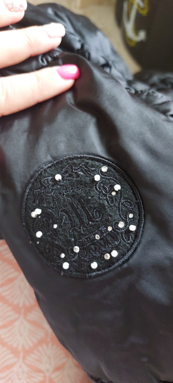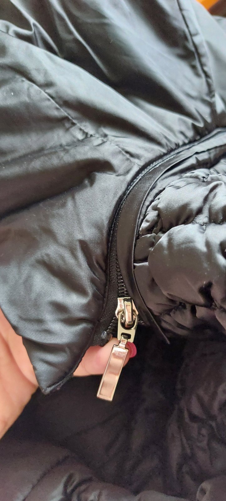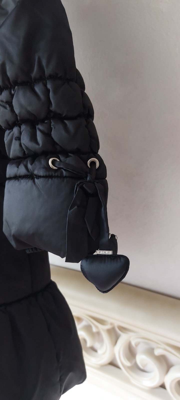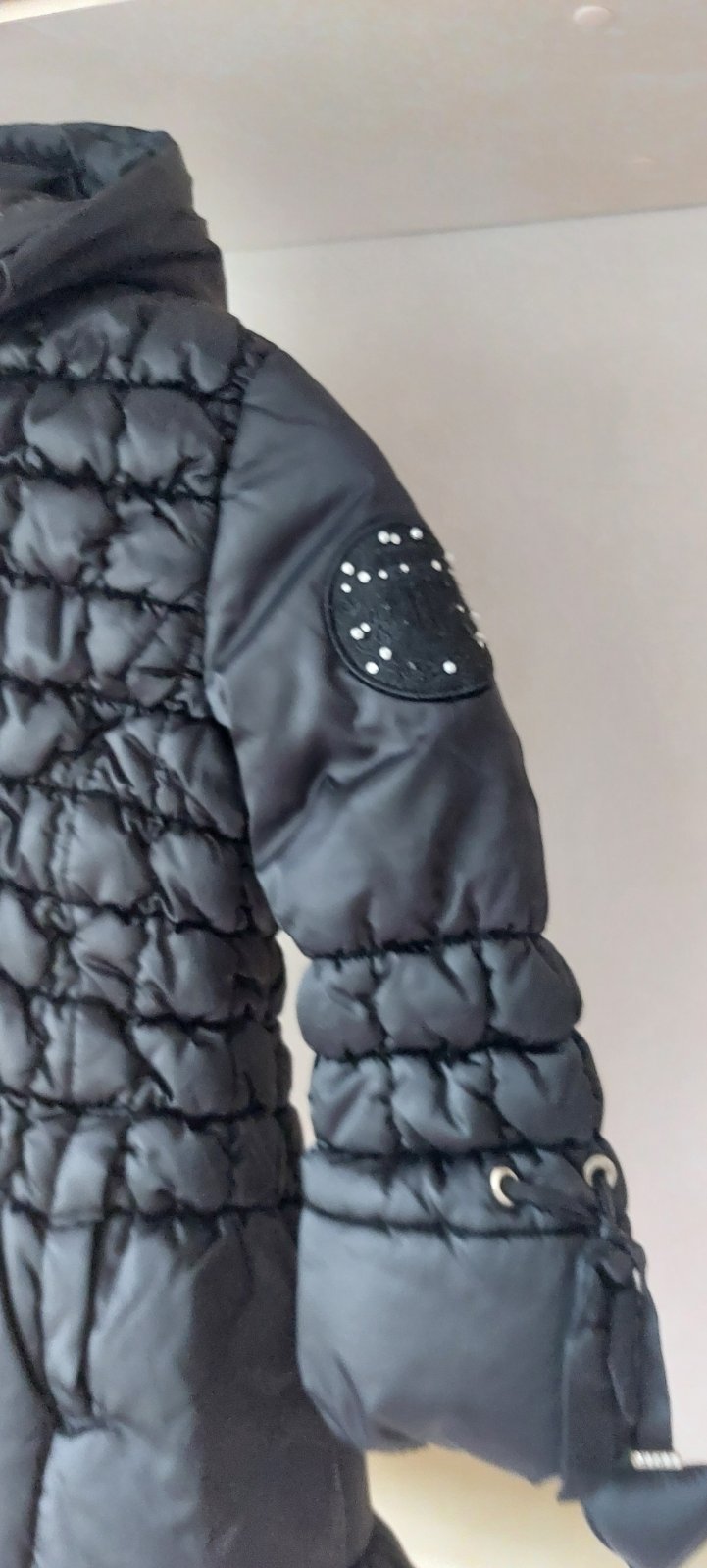 Dá sa nosiť tak okolo veľkosti 104/110,ale tým ze je predlzena vydrží aj dlhšie závisí od dieťatka lebo naša bola drobnejsia. Je v 100% stave, zdobená kamienkami. Kapucňa je odnímateľná.