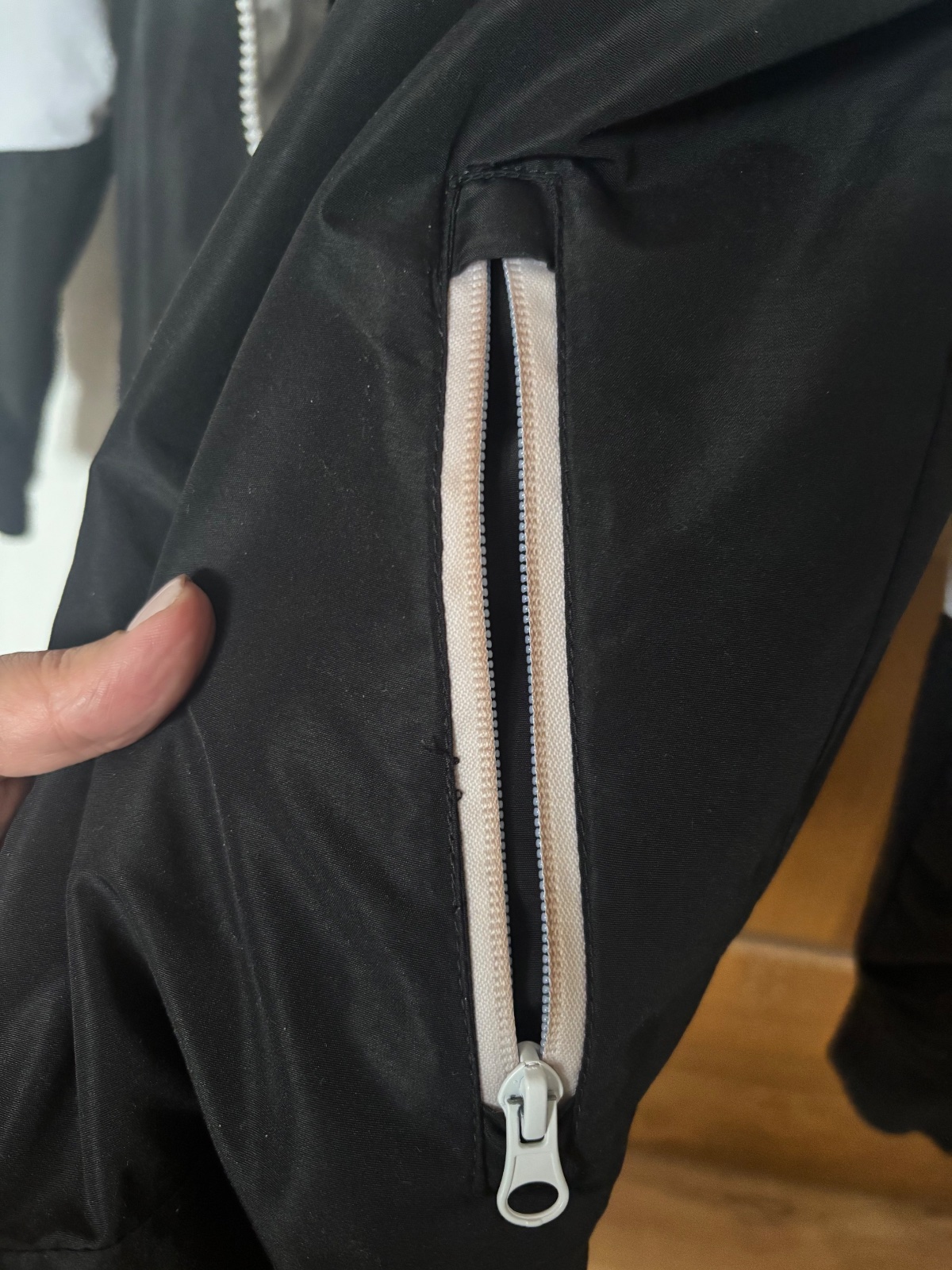 Okolo zipsov na vreckách akoby zašlá farba, snažila som sa odfotiť. Inak bez poškodení