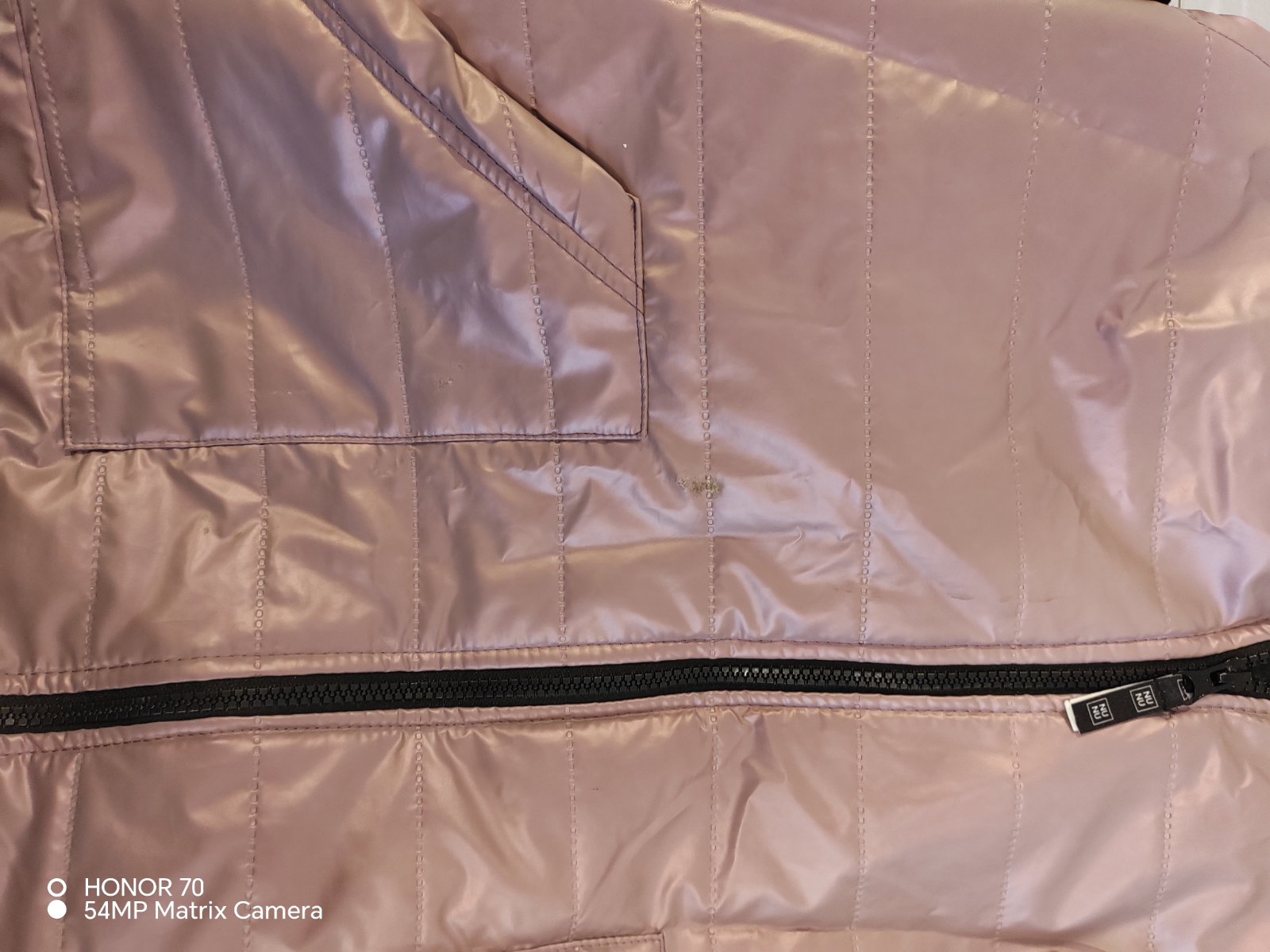 Na vrecku a kúsok vyššie zachytené.. Pri nosení nevidno, všimla som si to až keď som fotila.