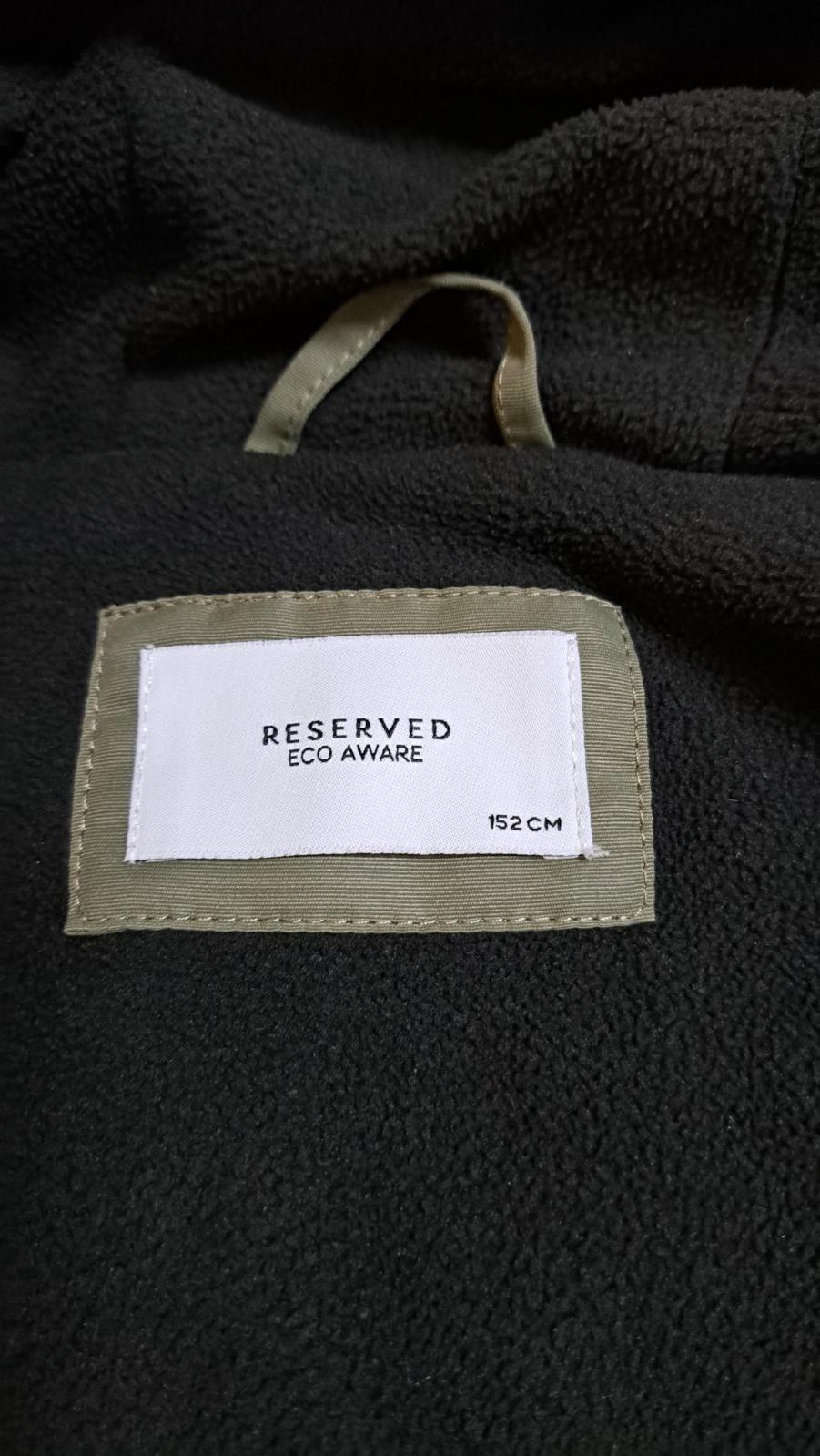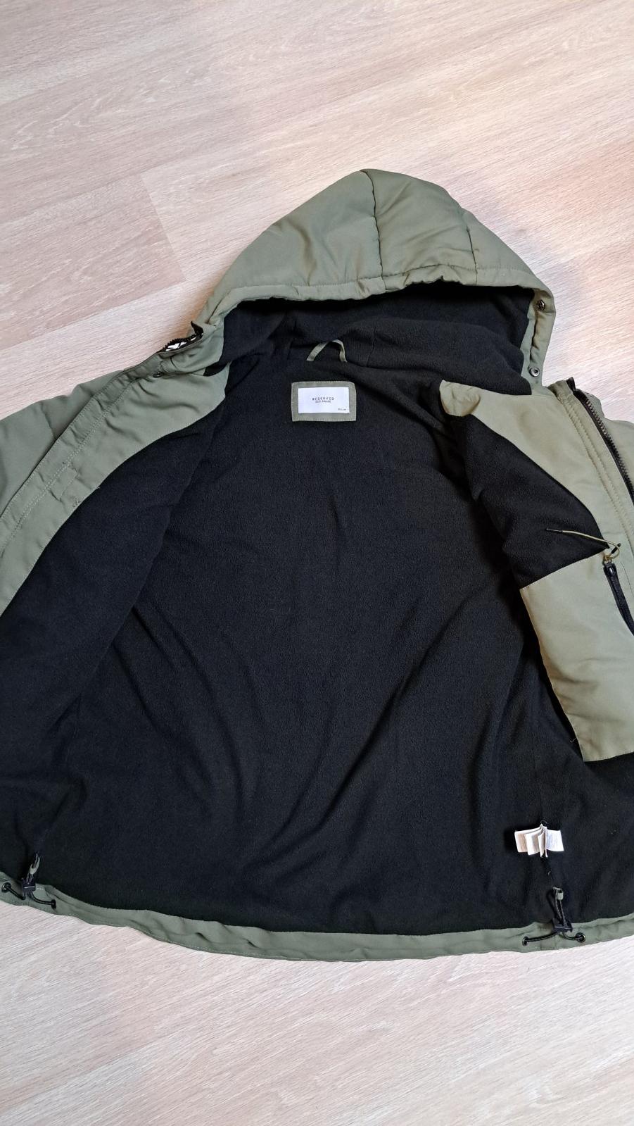 Zateplená bunda s kapucňou nepremokavá Reserved Veľkosť 146/152, 158/164, 170 Nízky stojačik Zapínanie na zips Dlhé raglánové rukávy Manžety a nohavice s elastickým lemom Dve vrecká na zips na pred...
