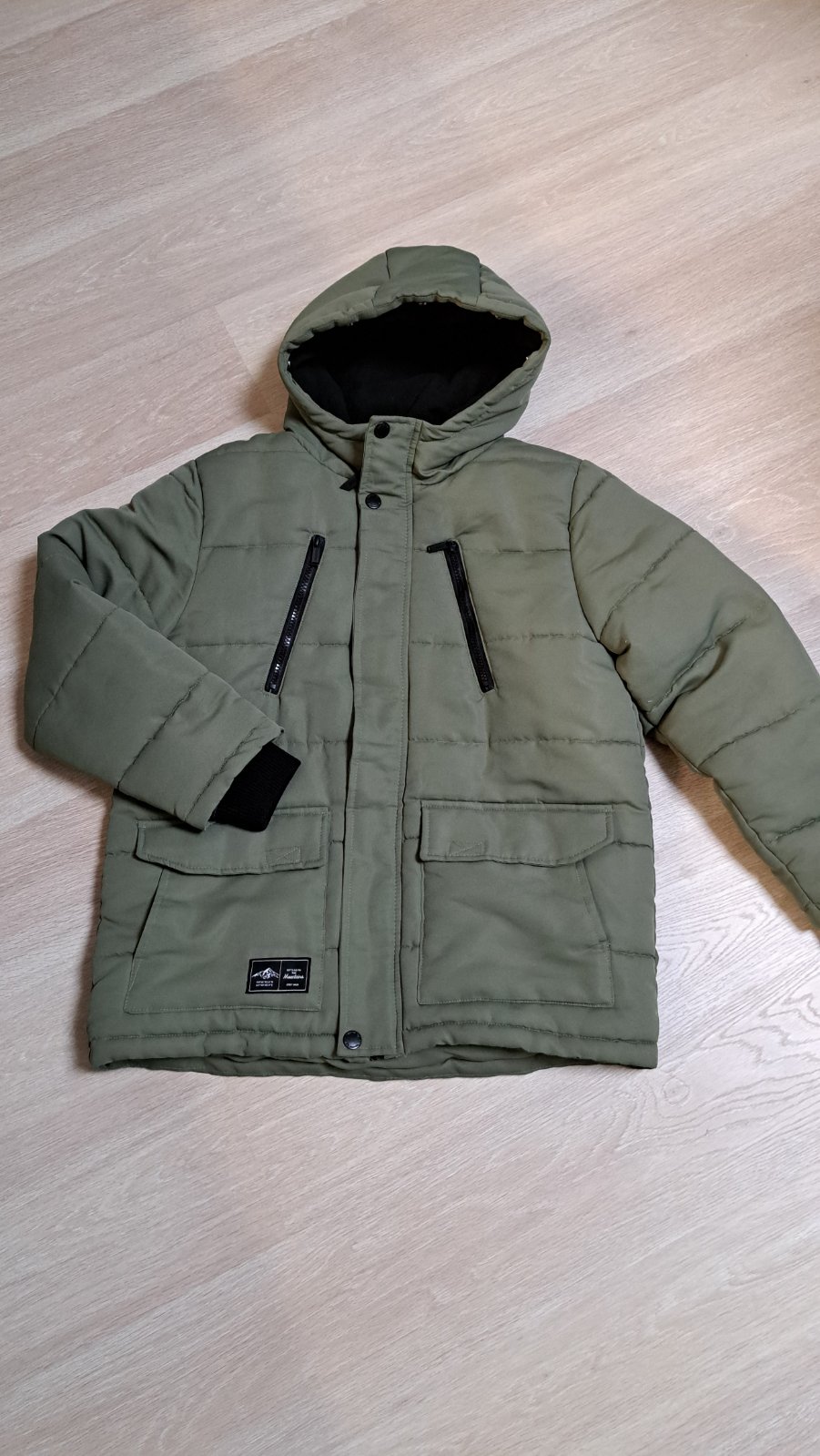 Super bundička teplá neprefúkavá kúpená nová nosená len synom...je bez poškodení nezničená iba sa trošku ošúpal nápis na chrbte od tašky nič hrozné...dá sa ten nápis odlupnúť neostávajú tam fľaky p...