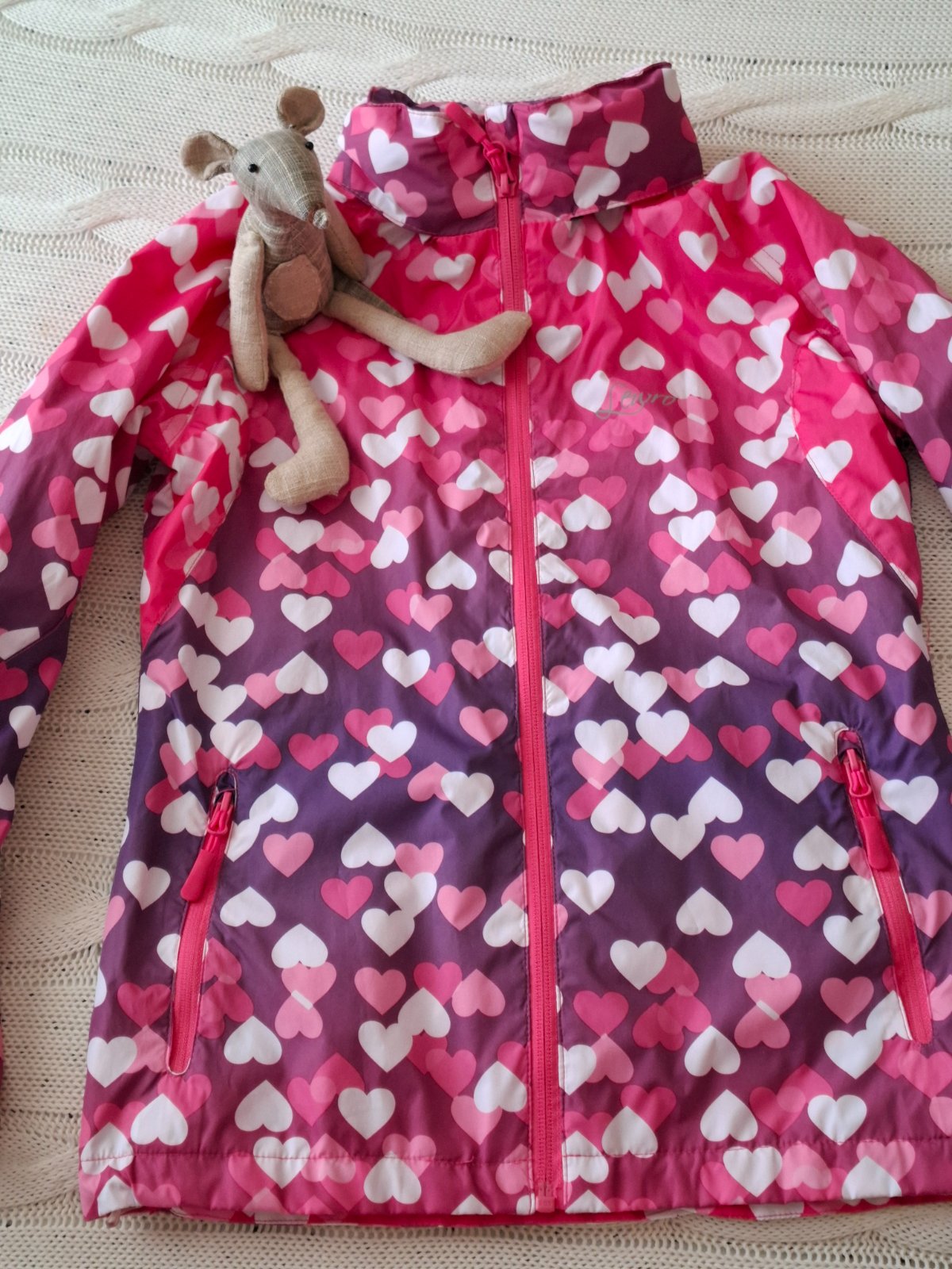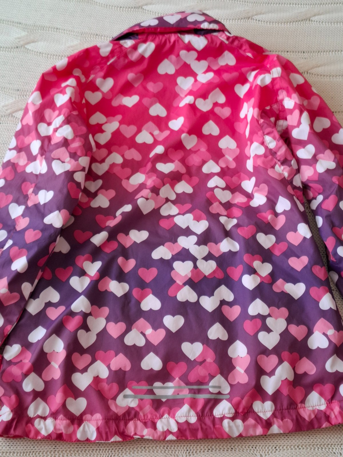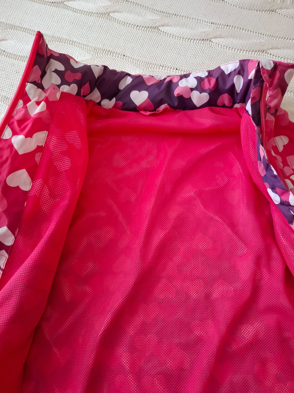 Krásna ľahká tenká bundička v top stave, bez poškodenia. Podšitá sieťovinou. Má aj kapucňu, dá sa zrolovať do goliera. Veľkosť uvedená 128/134. Nemeriam, veľkosť sedí