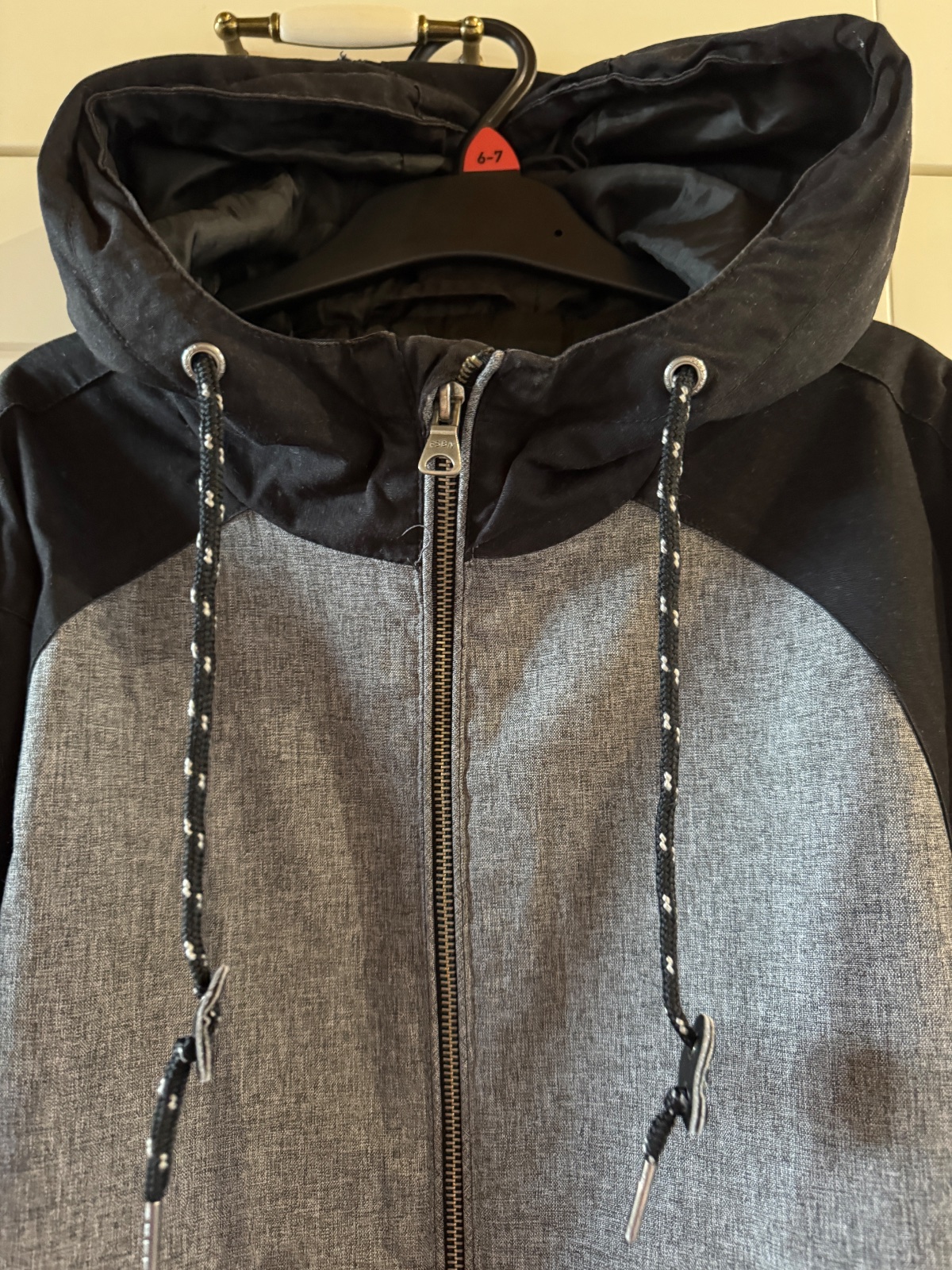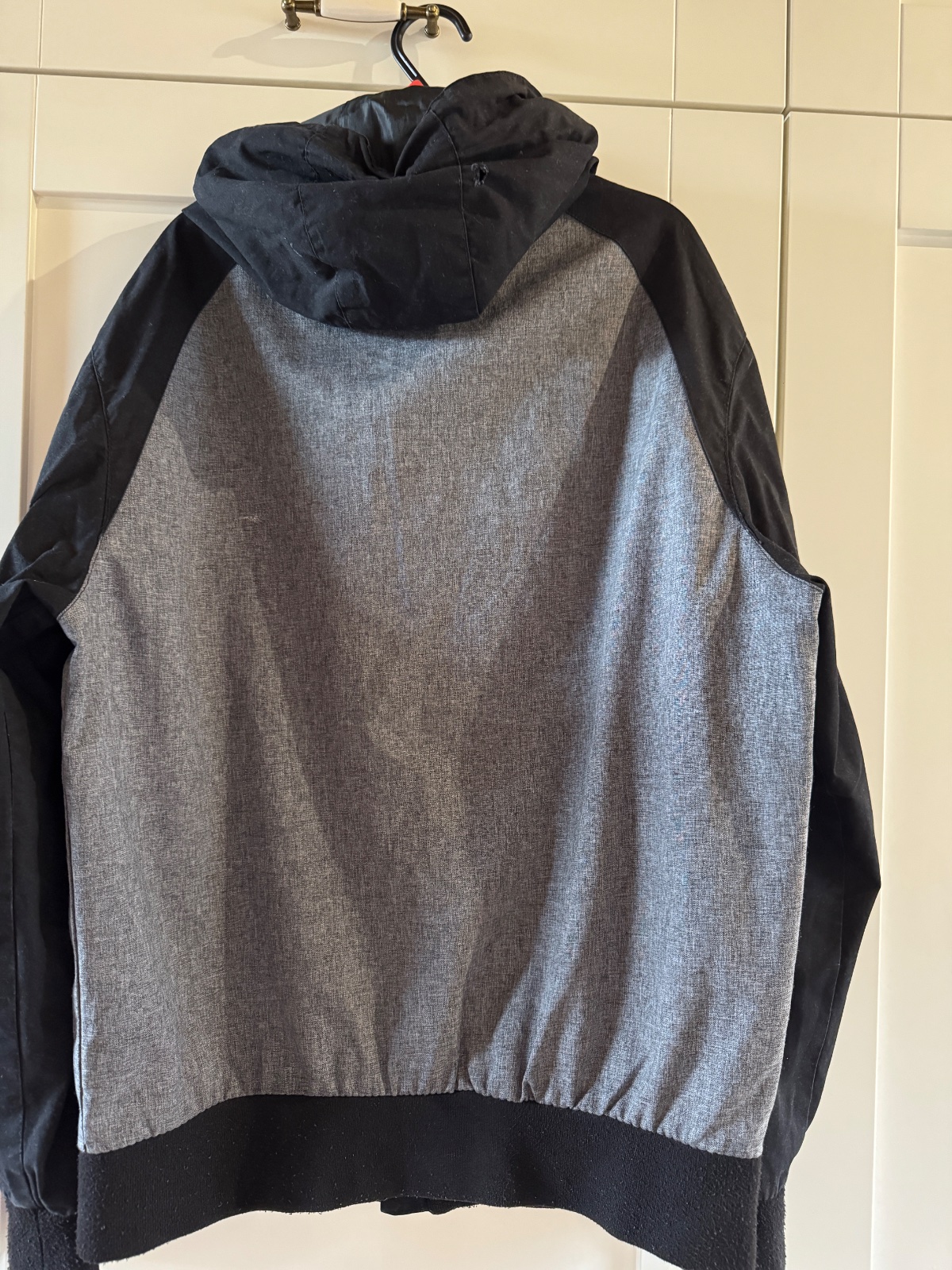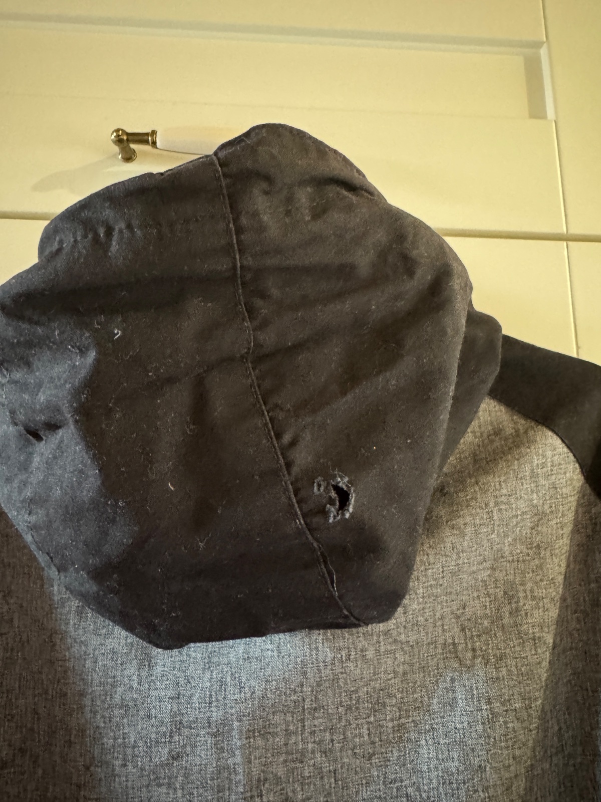 Bežné známky nosenia, na kapucni dierka