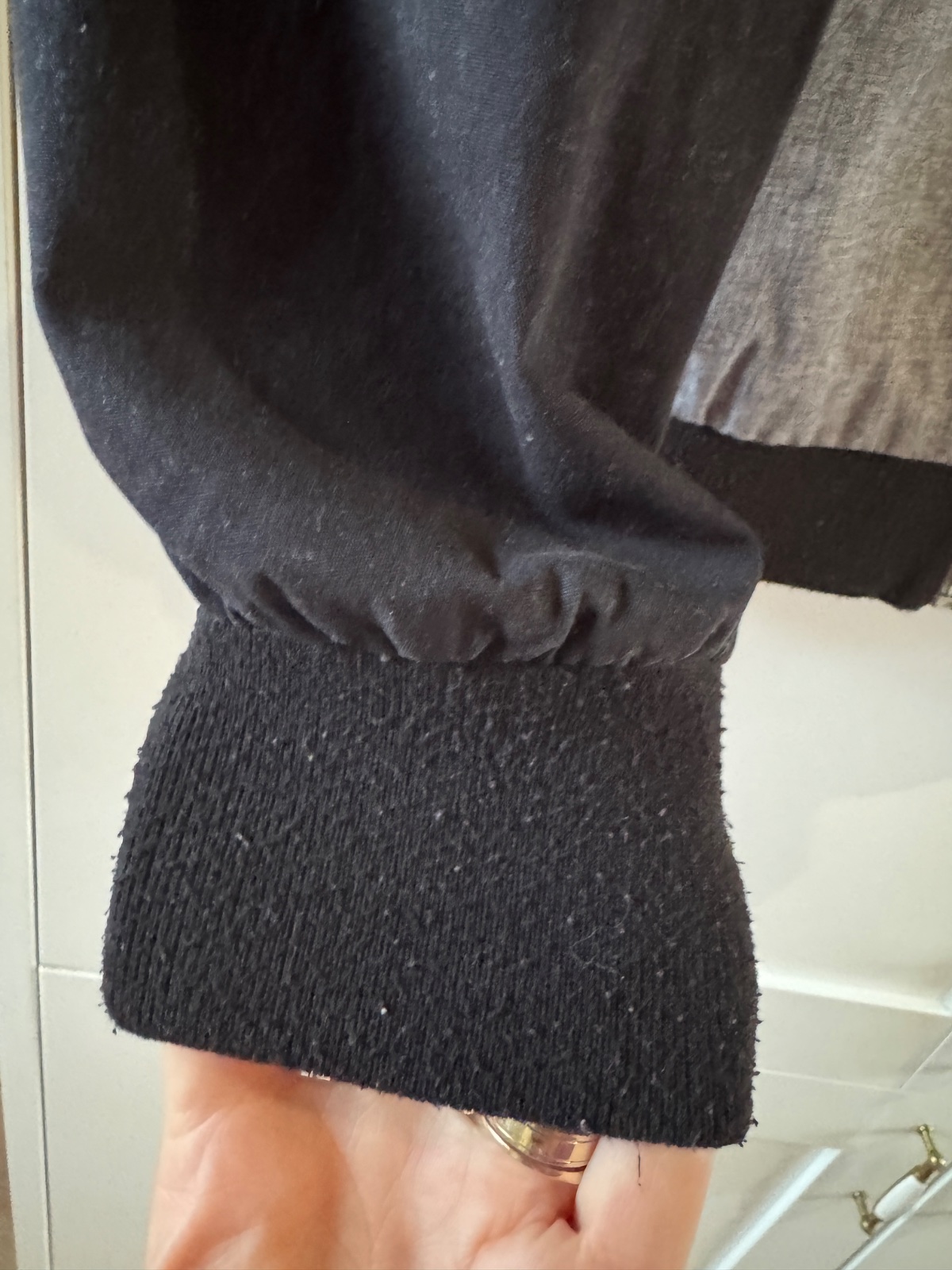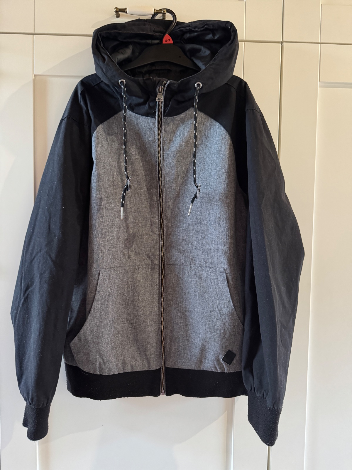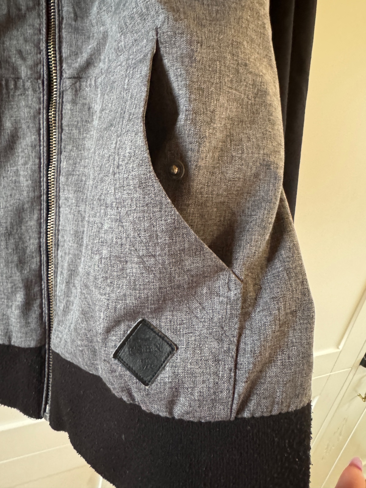 Bežné známky nosenia, na kapucni dierka