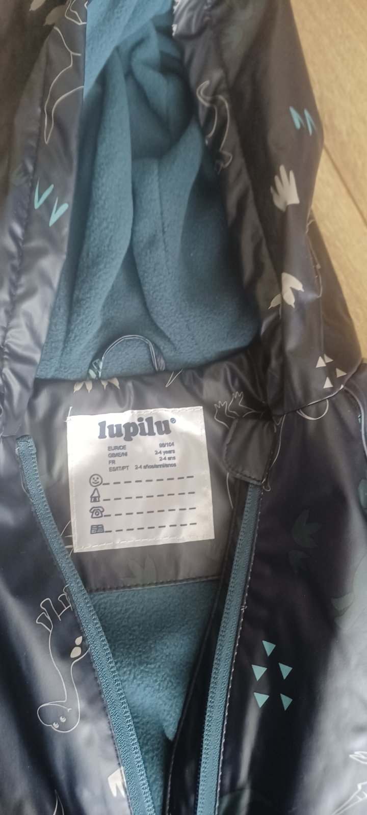 Bunda je nová s visačkou, vpredu ma maličké zatrhnutie, vid foto, vo vnútri je flis, veľkosť je uvedená 98 /104.