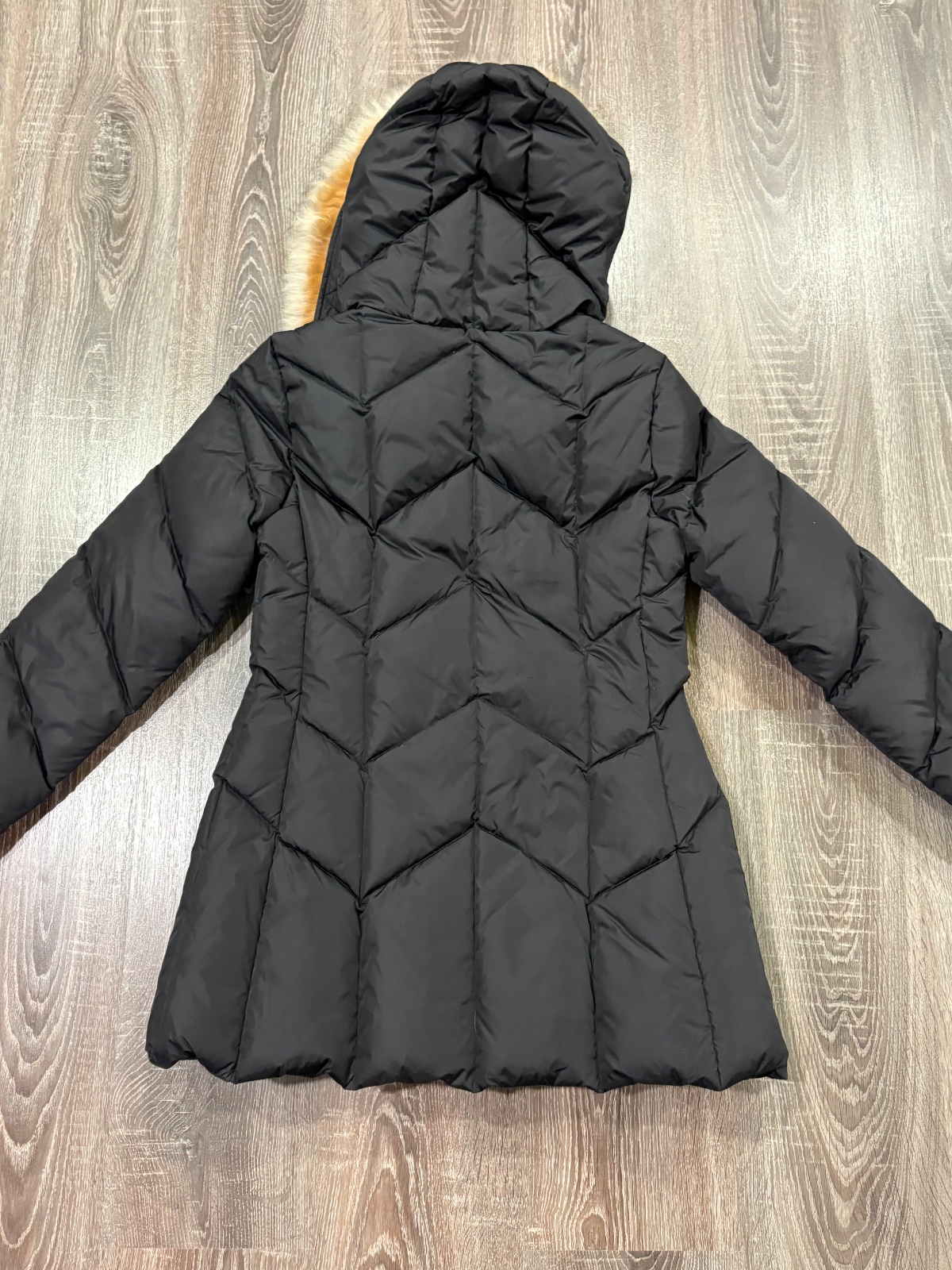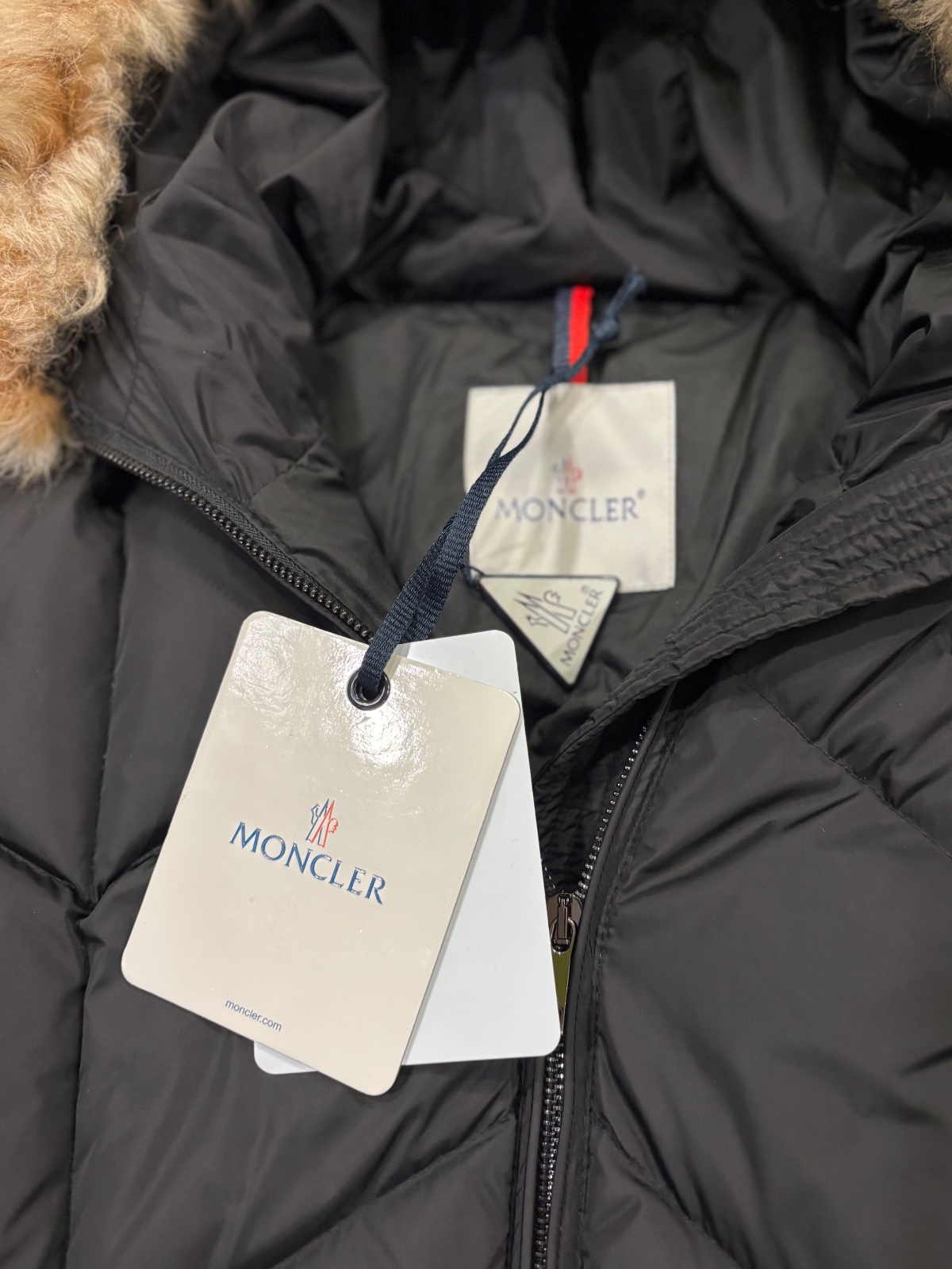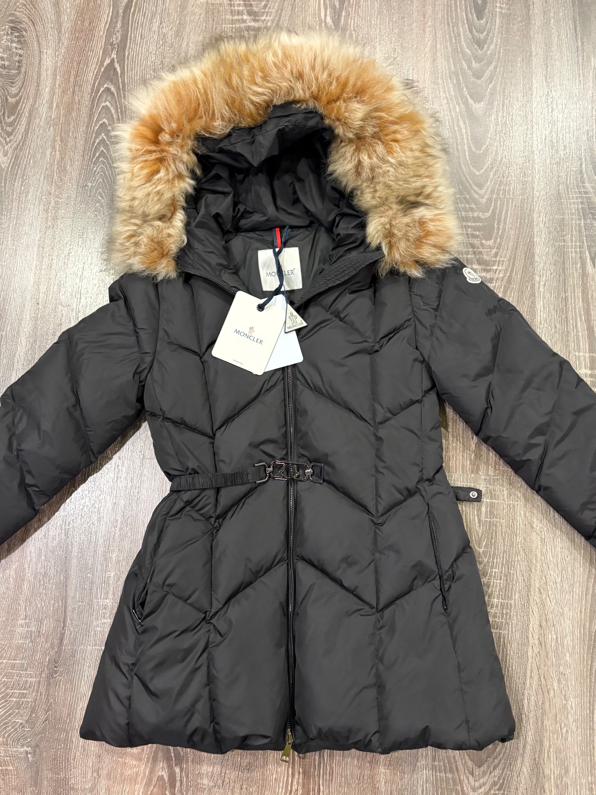 Moncler damska paperova predlzena vetrovka s krasnou hunatou kožušinou, ktora sa da odopnút,velkost S.Dlžka je 78cm,dlzka rukava od krku jee 75cm a sirka v podpazusi je 49x2cm.V pase je aj opasok,da sa nosit aj bez neho