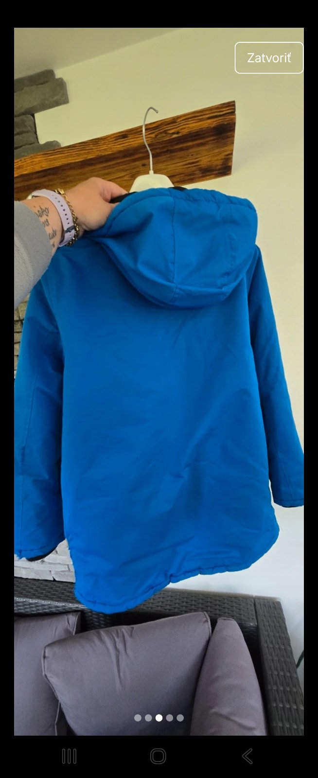 Málo nosená, top stav. Nepremokavá, vetruvzdorná. Kapucňa prišitá na pevno, zips s ochranou brady. Dve vonkajšie vrecká a 1 vnútorné vrecko. Veľkosť písaná na 14-15 rokov. Rozmery: dĺžka 67 cm, ...