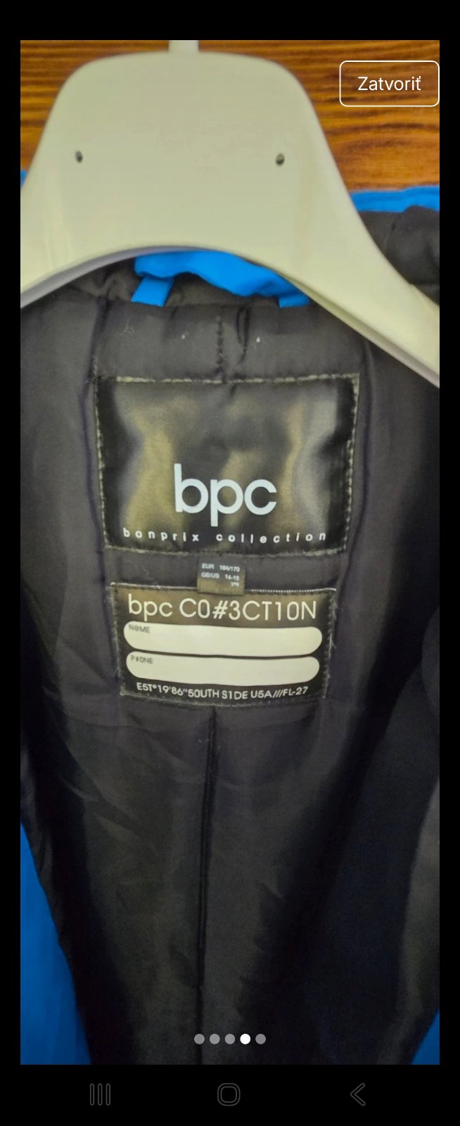 Veľ.164/170, kapucňa napevno, lyžiarsky pás, bočné vrecká, reflexné prvky, vode odolná.Nosená na LV.Nemá žiadne poškodenia.Cena vrátane poštovného.