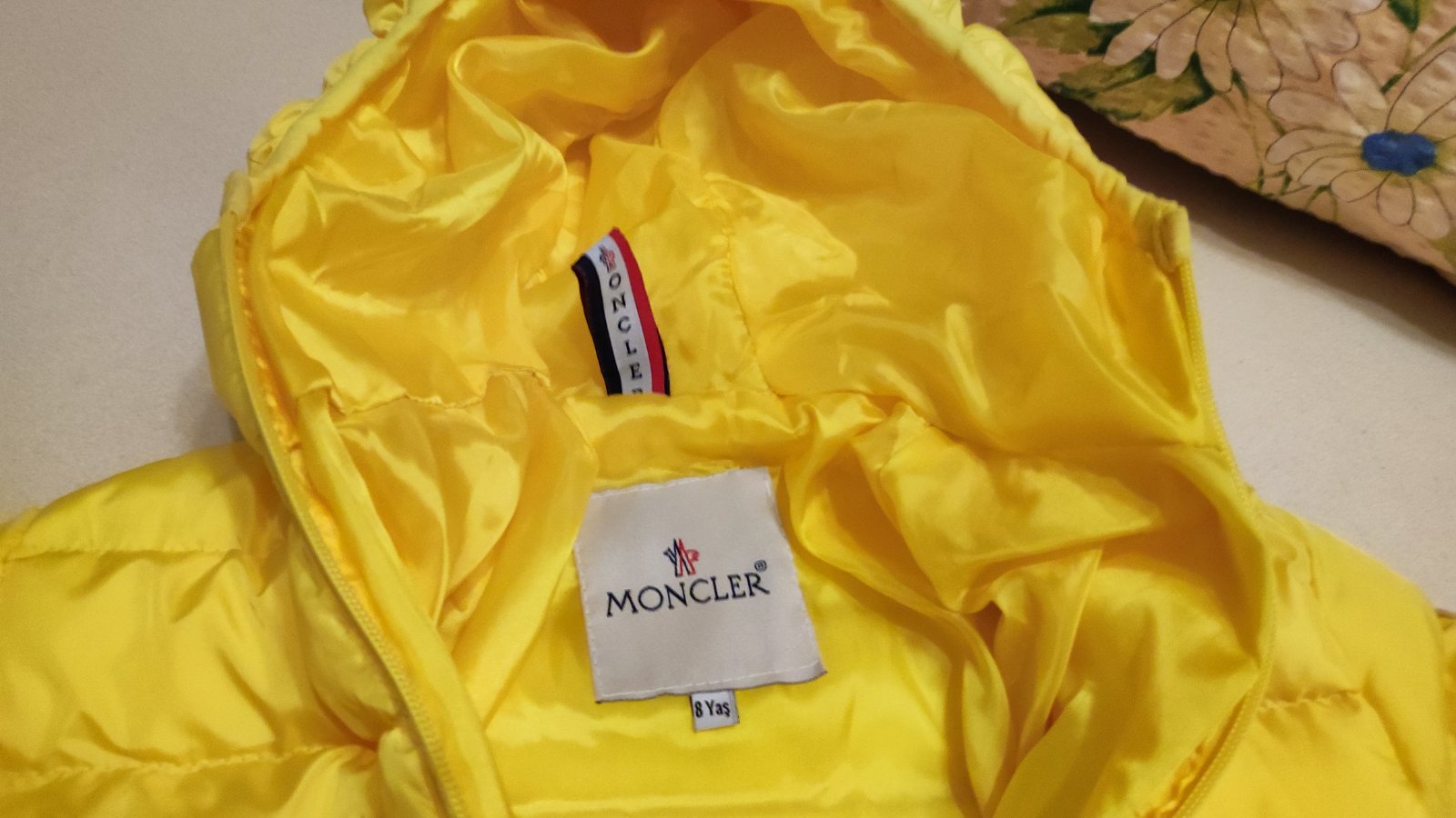 Dobry noseny stav. Po vyprani som si vsimla maly zatrhnuty kusok latky,, ktory po zasiti nebude rusit... je to vedla vacku, smerom dozadu, takmer na boku kabatika... vid foto. Zohladnene v cene.
