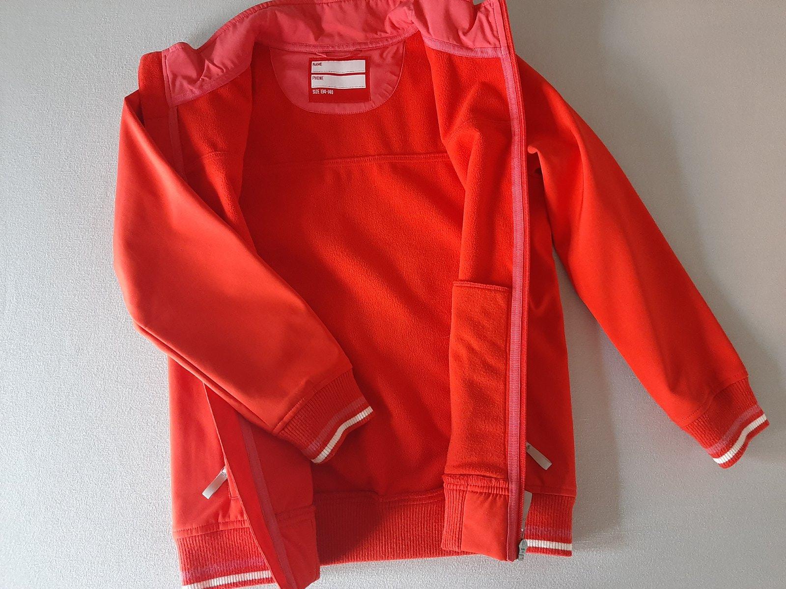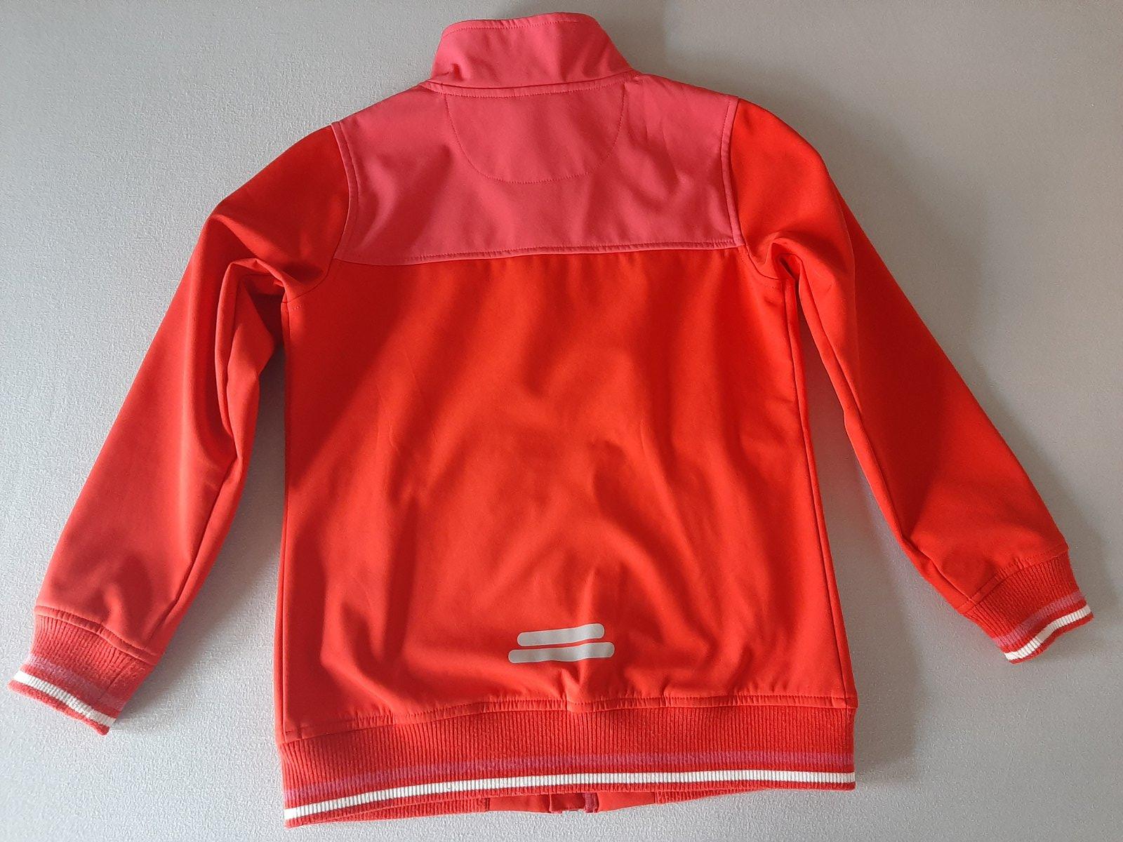 Softshelová nepremokavá bunda červenej farby značky Tchibo vo veľkosti 134/140. Bunda sa zapína na zips, má ochranu brady a tiež vrecká. Vo vnútri má flisové zateplenie a rukávy na patenty. V TOP stave.