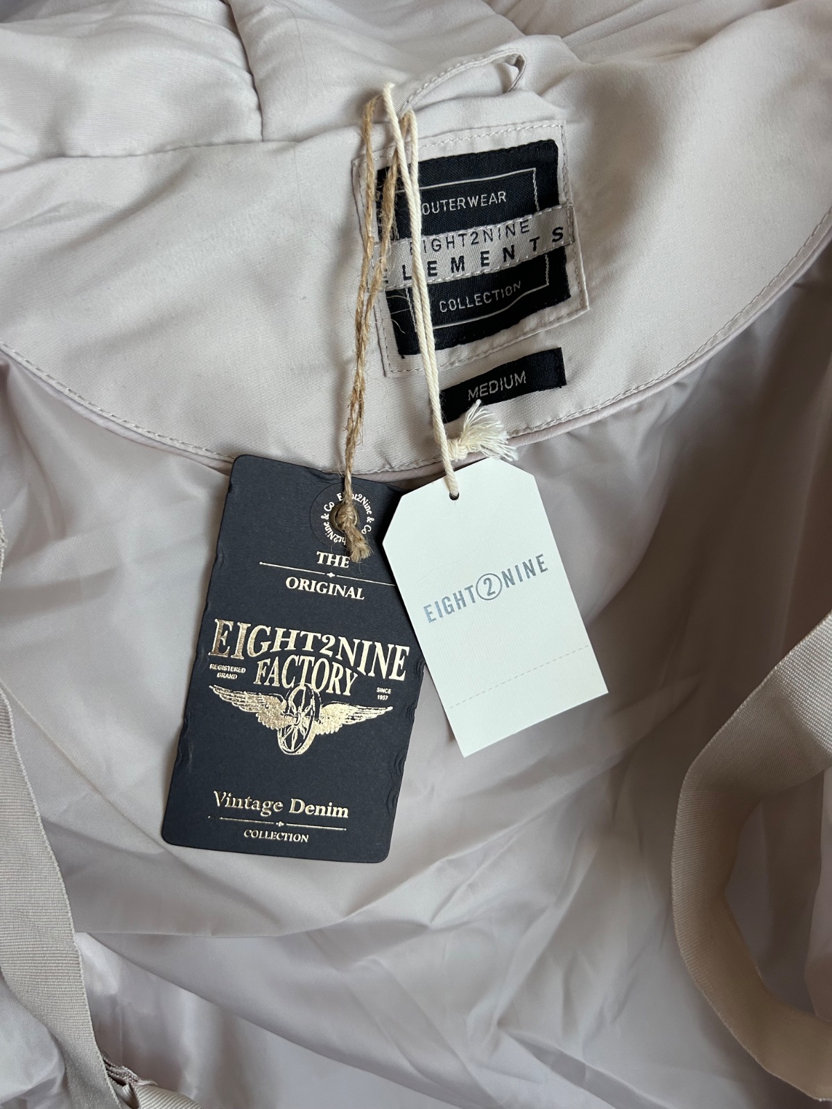Eight2nine značka,dĺžka od pleca pri krku 85 cm, šírka pod pazuchami 54x 2cm, rukav od pleca celkovo aj s patentom 63 cm