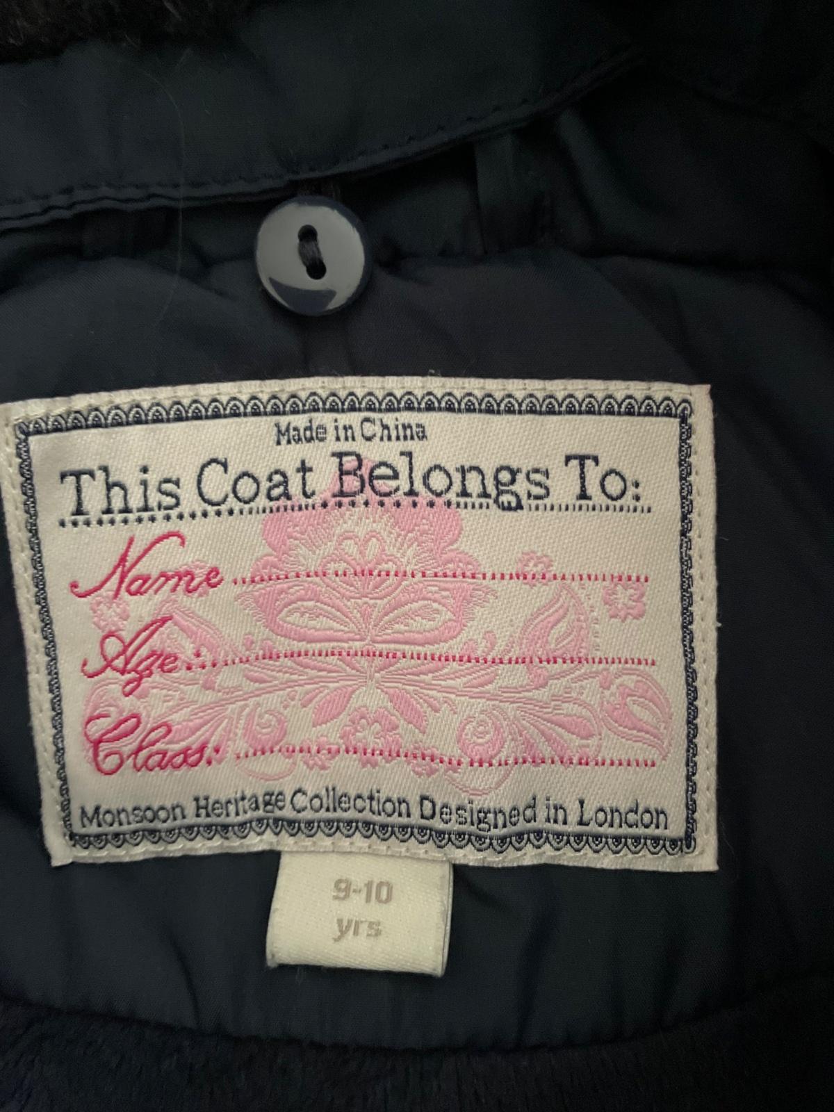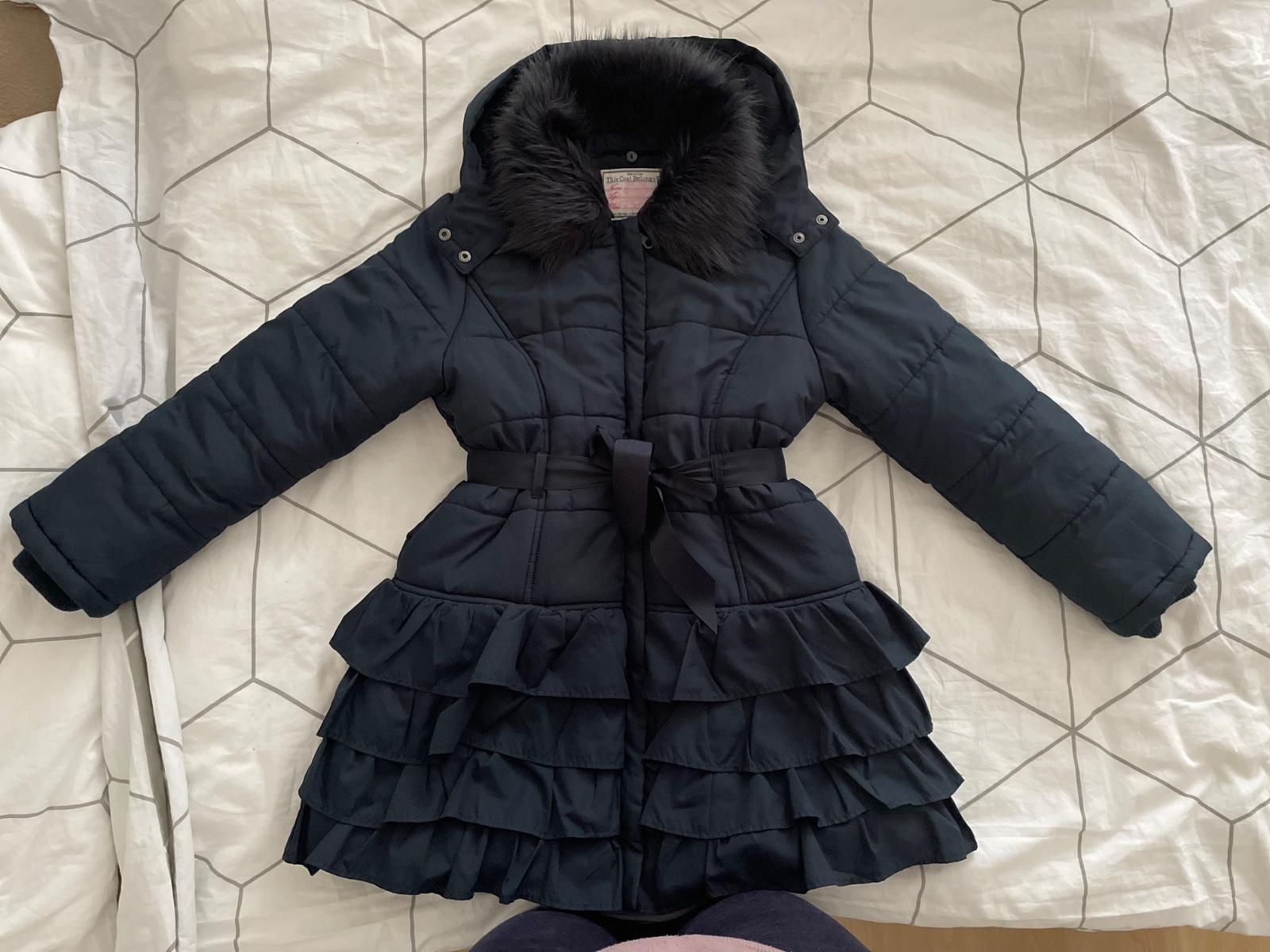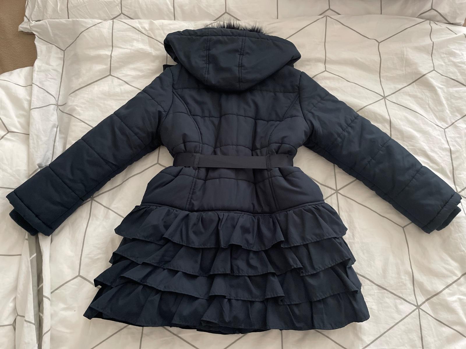 Nádherný a mimoriadne teplý kabát Monsoon s volánikmi. Aj na veľmi tuhú zimu. Patenty na rukávoch, teplý flís po celej vnútornej podšívke. Odopínateľná kapucňa a kožušinka. Veľkosť na 9-10 rokov. Vynikajúci stav. Žiadne poškodenia. Nosený iba príležitostne. Cena plus pošta.