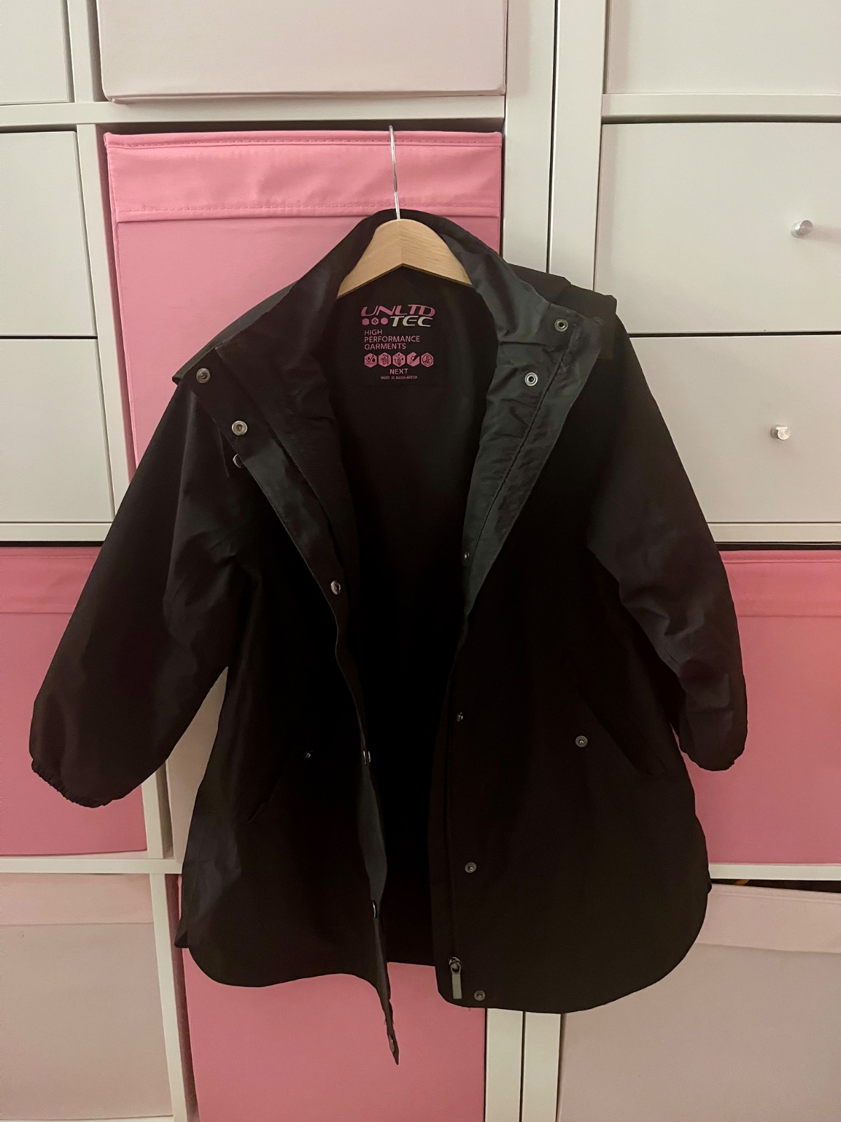 Predlzena bunda Next, vodeodolna s kapucnou napevno, velkost 116, rozmery na fotkach, super stav