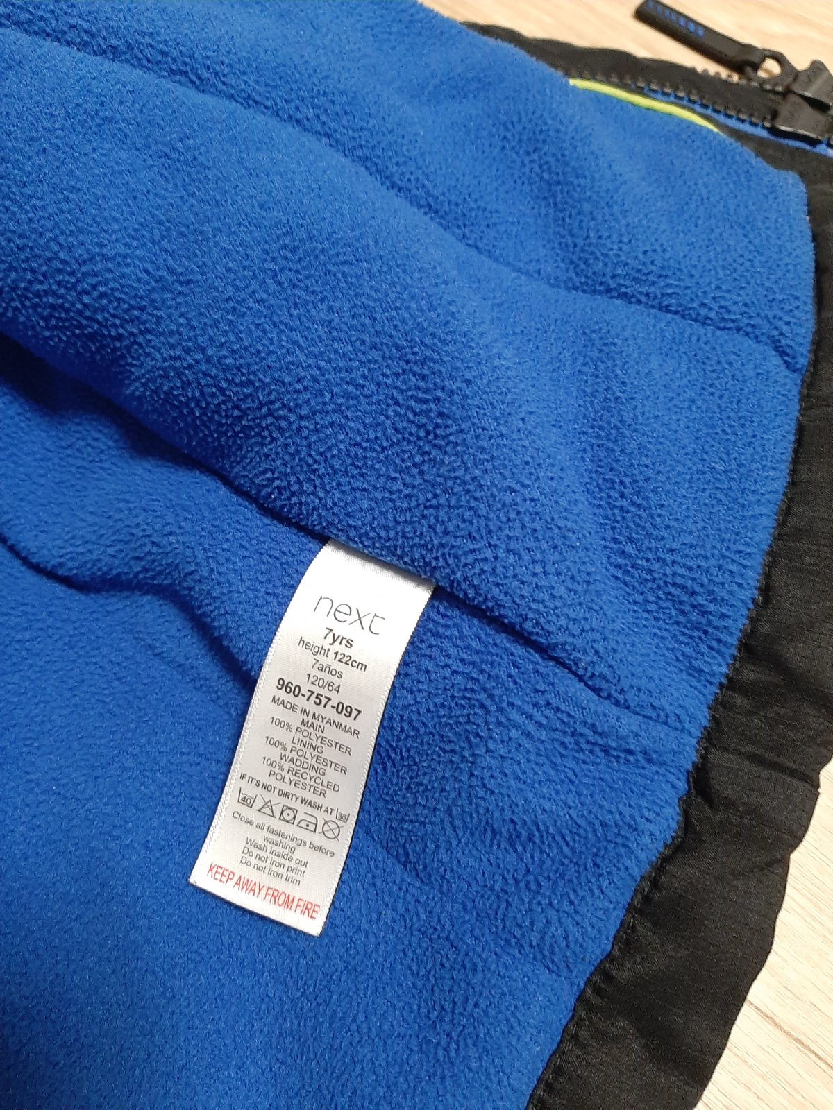 Kvalitna nepremokava zimna bunda pre chlapca znacky Next vel.7r zvnutra podsita flisom. Zaujimavo riesena vpredu s dvomi zipsami