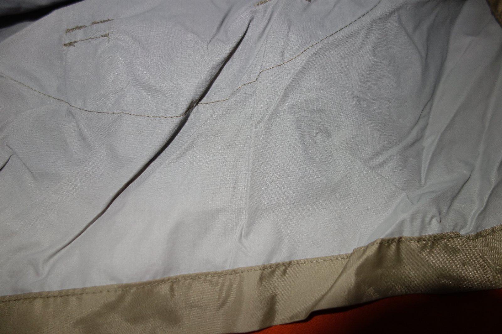 Pekna sustakova bundicka vo velmi dobrom stave- avsak na rukaviku ma tmave skvrny (vid foto). Da sa zbalit do vrecka. Farba je taka sivo-hneda. Je tenucka, nie je ani podsita.