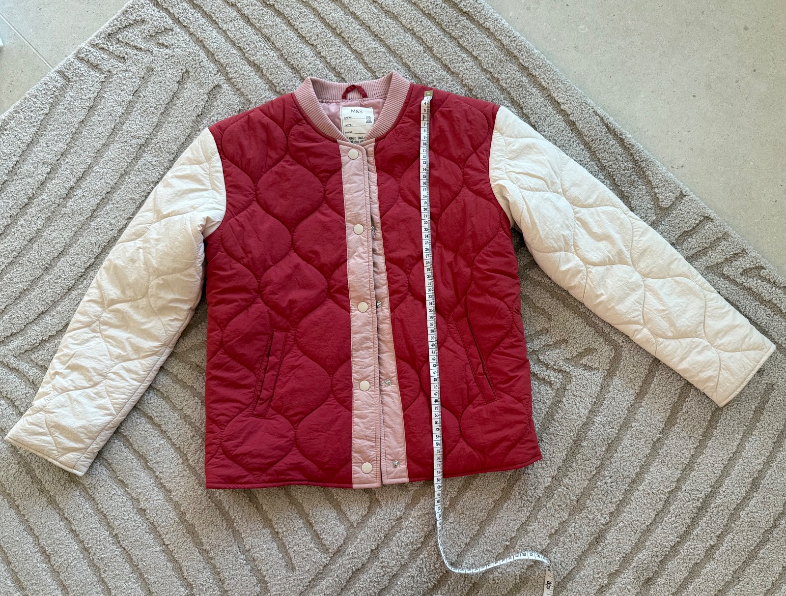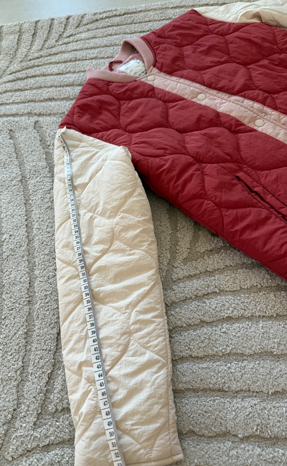 Prechodna bunda - v super stave, velkost 152, farba je taka svetlo cervena (fotka je trosku cervensia) . Nosena 5x.