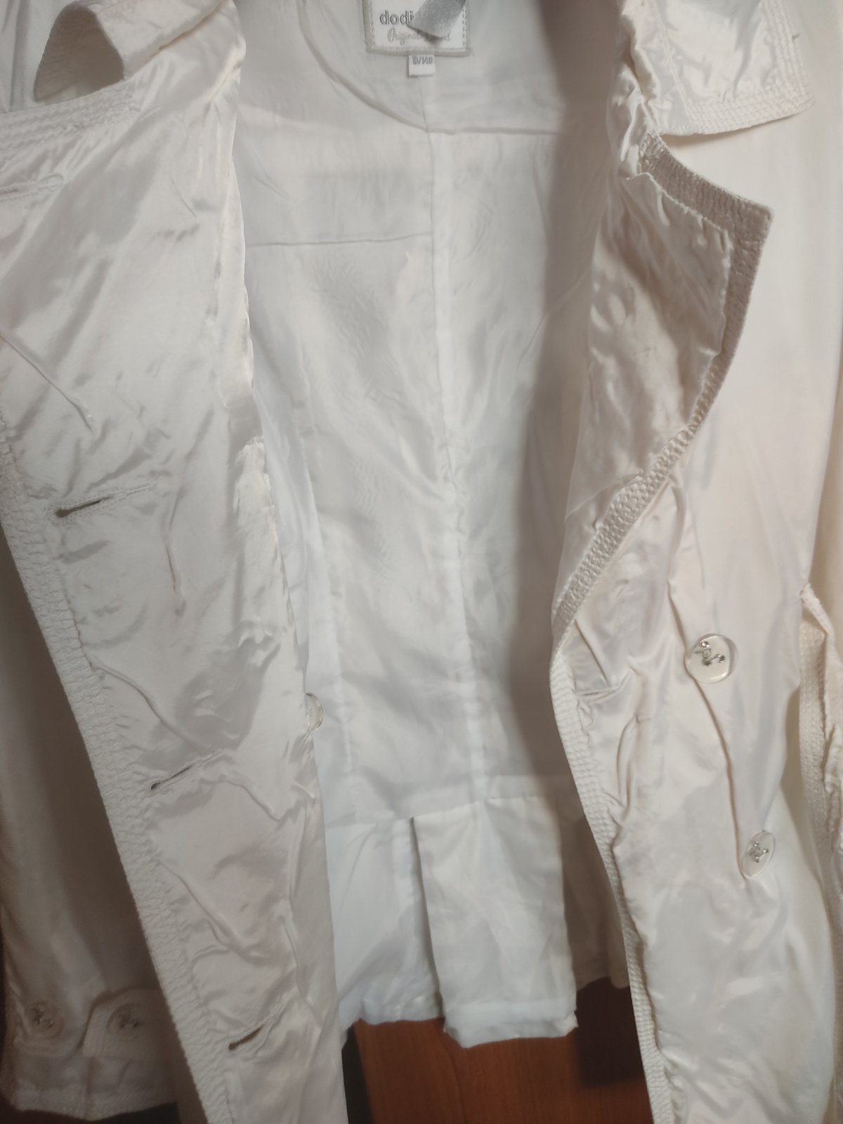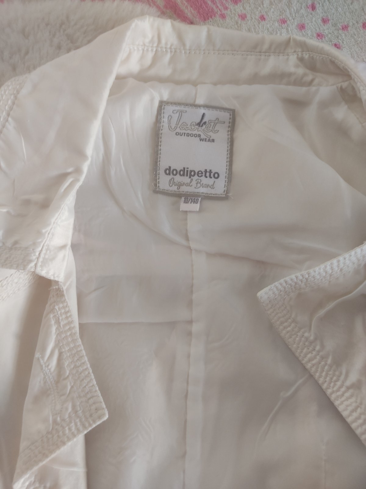 Predám kabátik prechodný jar-jeseň, zn.Dodipetto, veľ. 140 (10 rokov), dĺžka 64cm, šírka v pase 36cm, pod pazuchami 40cm, rukáv 52cm, nedostatky na foto, cena 10e.