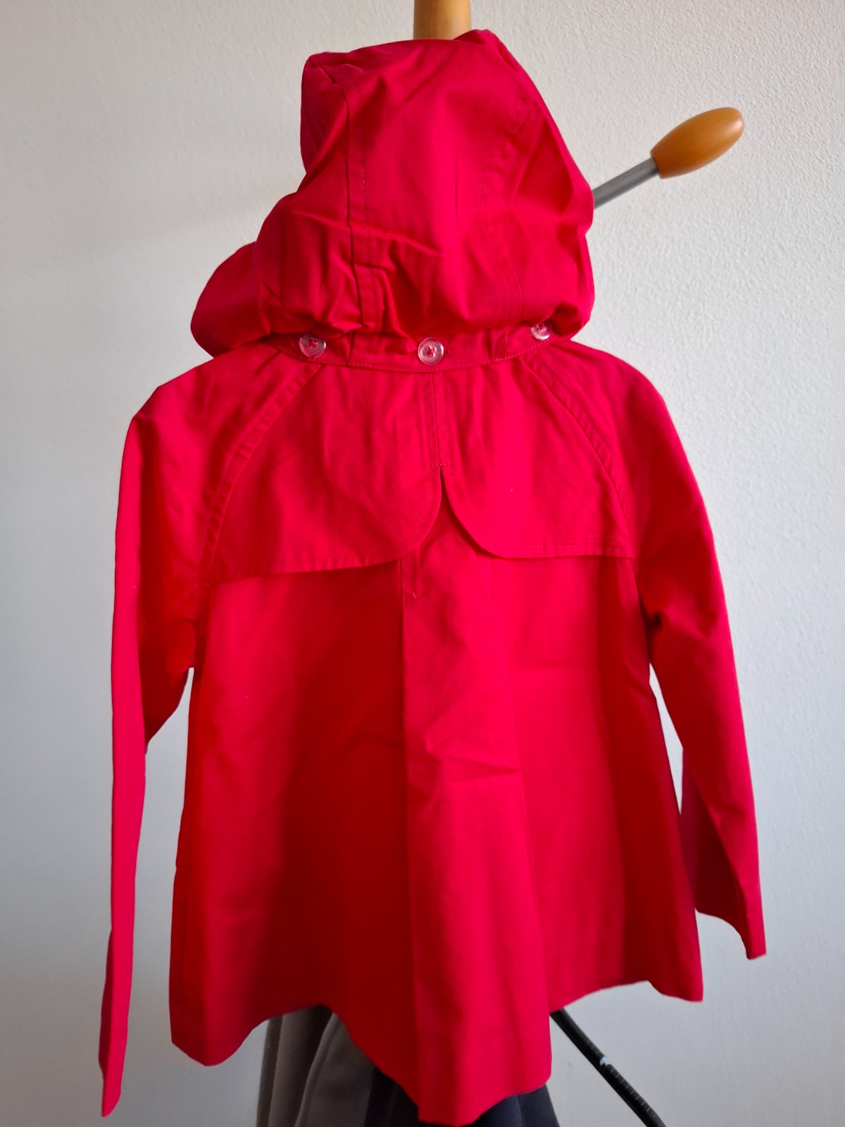 Červená koženka na prechodné obdobie. Praktické zapínanie na zips a patenty. Možno odopnúť patenty a zapnúť kabátik až po krk. Celková dĺžka je do 30 cm, šírka na hrudniku je 30 cm, vonkajšia dĺžka...