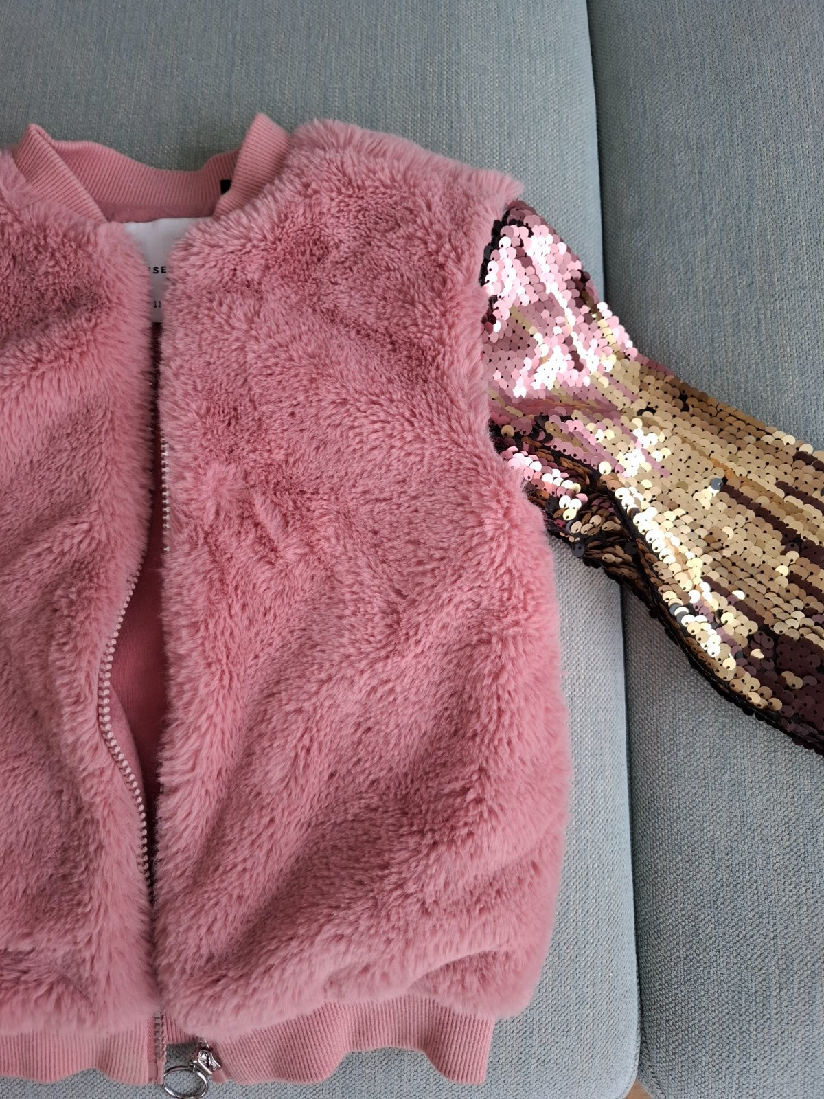 Perfektný stav:-) Krásna ružová bundička s kožušinkou na kapucni, min. mosená.