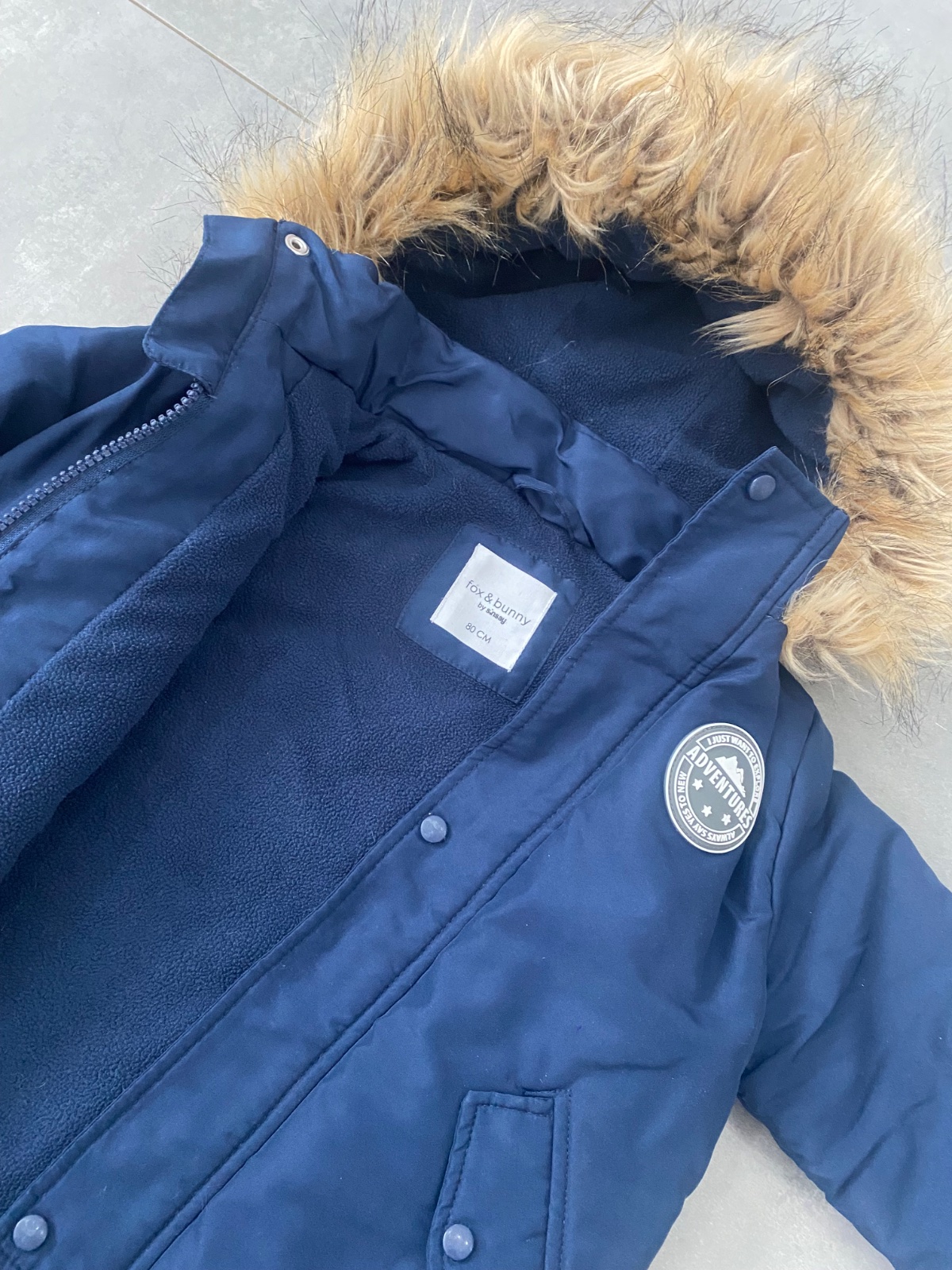Pekný nosený stav, zvnútra zateplená, ale napriek tomu ľahká, syn ju nosil celú zimu, mali sme aj hrubšiu bundu ale tú vôbec nenosil, veľkosť 80, ale je väčšia, nosil ju ako 86 veľkosť