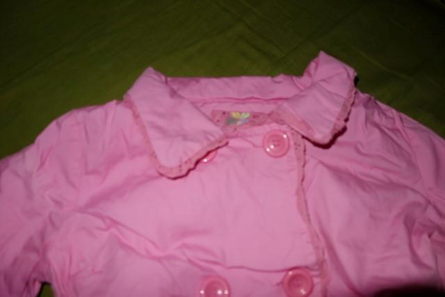 Pekny kabatik vo velmi dobrom stave. Je mierne futrovany, takze moze byt aj na prechod. Pise sa velkost 128, ale podla mna je mensi- taka 116-ka podla rozmerov.