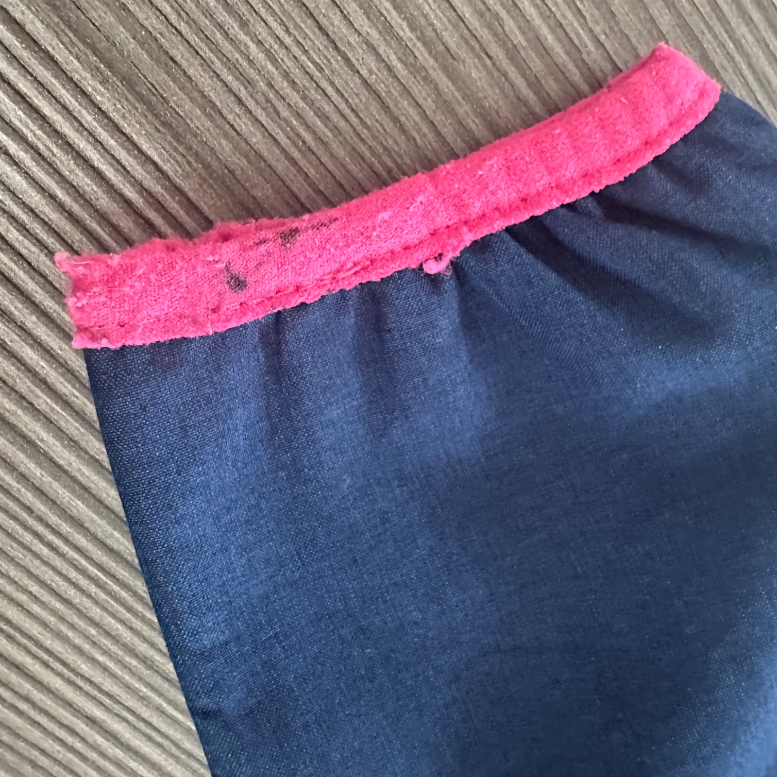 Štýlová riflovka, prešitá ružovou nitkou.