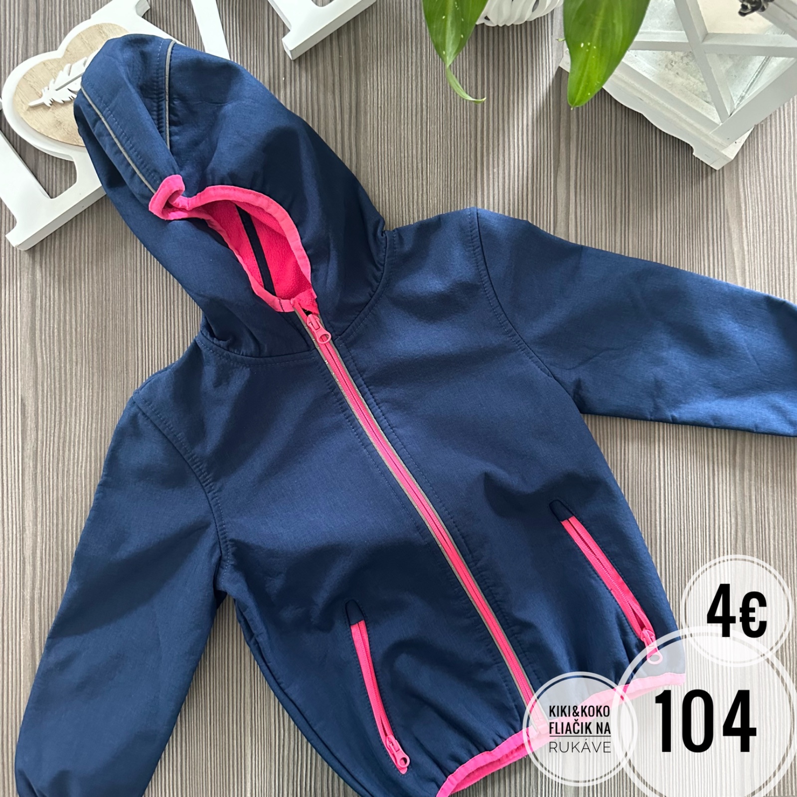 Dievčenská softshellová bunda. Nie je zateplená. Veľkosť sedí presne na 104. Na foto nedostatky a opravy. Bez fľakov.
