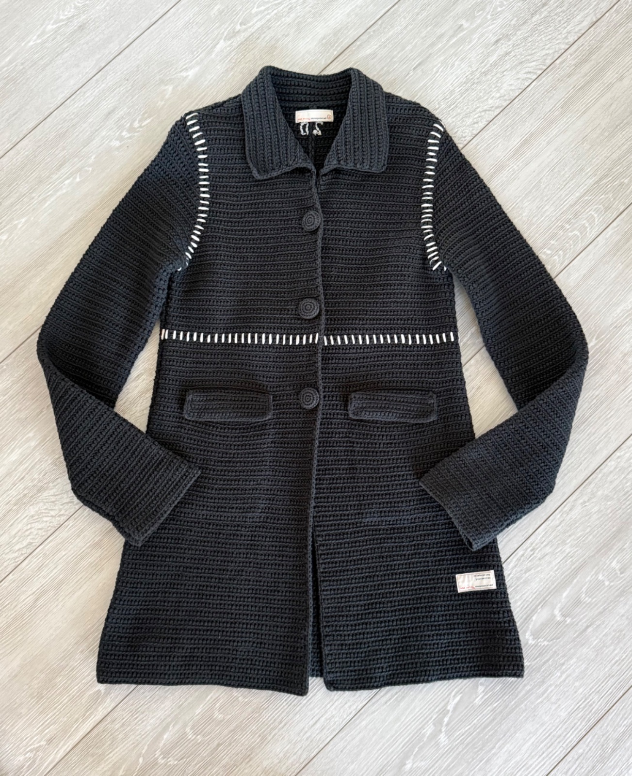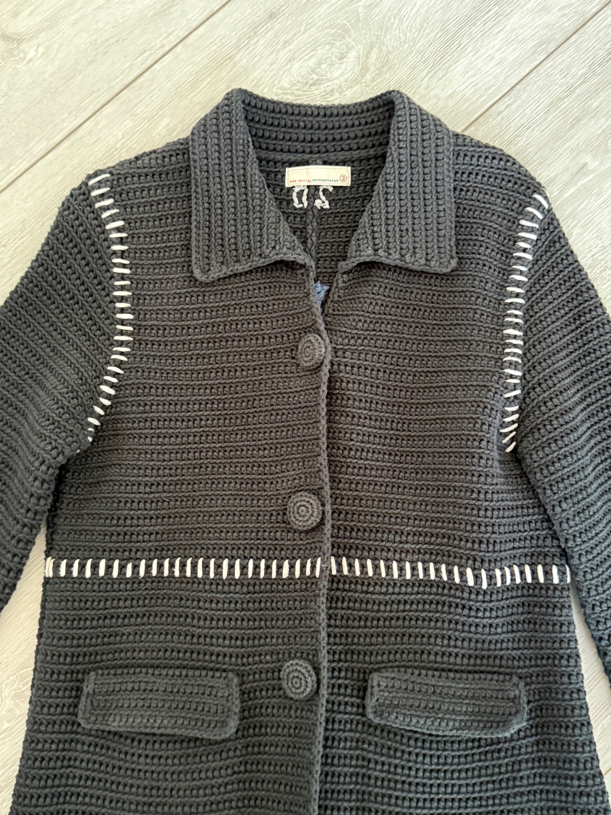 Unikátny pletený kabát Odd Molly. Krásne detaily, funkčné vrecká. Farba tmavosivá. Velkost S. Miery:šírka praia 45, dĺžka 82 cm. Super nosený stav, bez poškodenia.