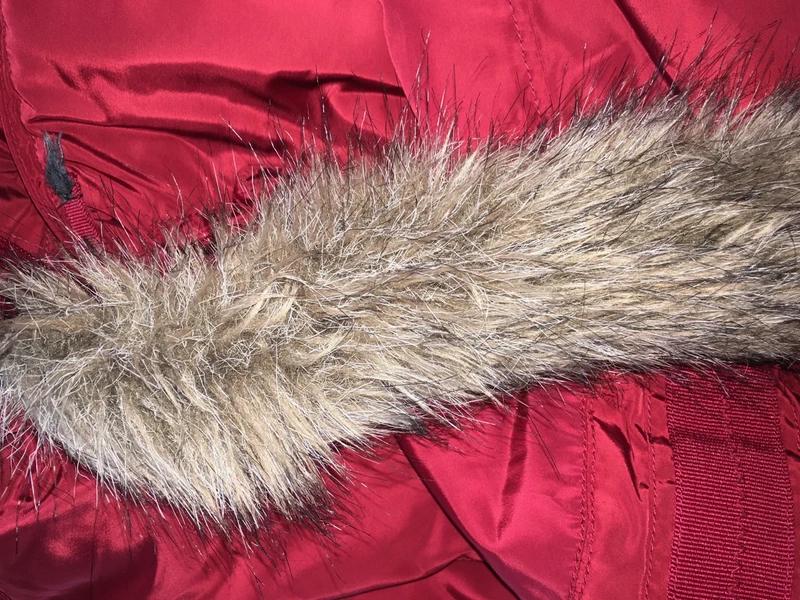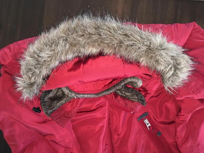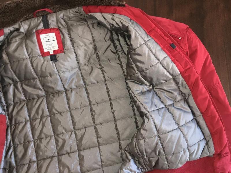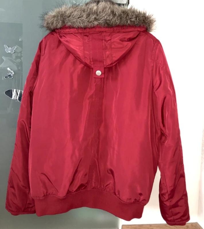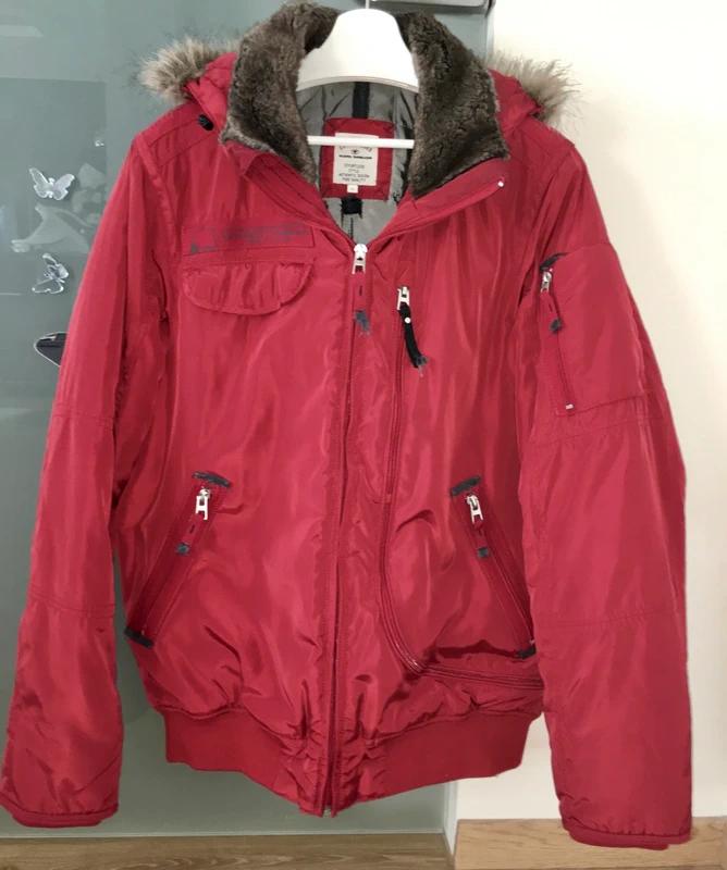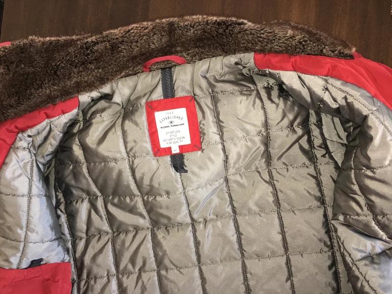 Bunda je teplučká, kvalitná. Krásna bordová farba, má jemný lesk. Overená značka Tom Tailor. Veľkou výhodou je, že ju môžete oprať v práčke. Má veľa vačkov a úložných miest, kožušina je odopínateľná, takisto aj kapuca. Čiže dá sa nosiť kapuca aj bez kožušinky. Na rukávoch sú patenty proti podfúknutiu, na límci je z vnútornej strany mäkká kožušinka, nie je potrebný šál. Veľkosť je XL. Je v podstate vo výbornom stave. Dĺžka je 73cm, rukáv od pleca 70cm, šírka 65cm. Pôvodná cena okolo 150€, teraz iba 39€.