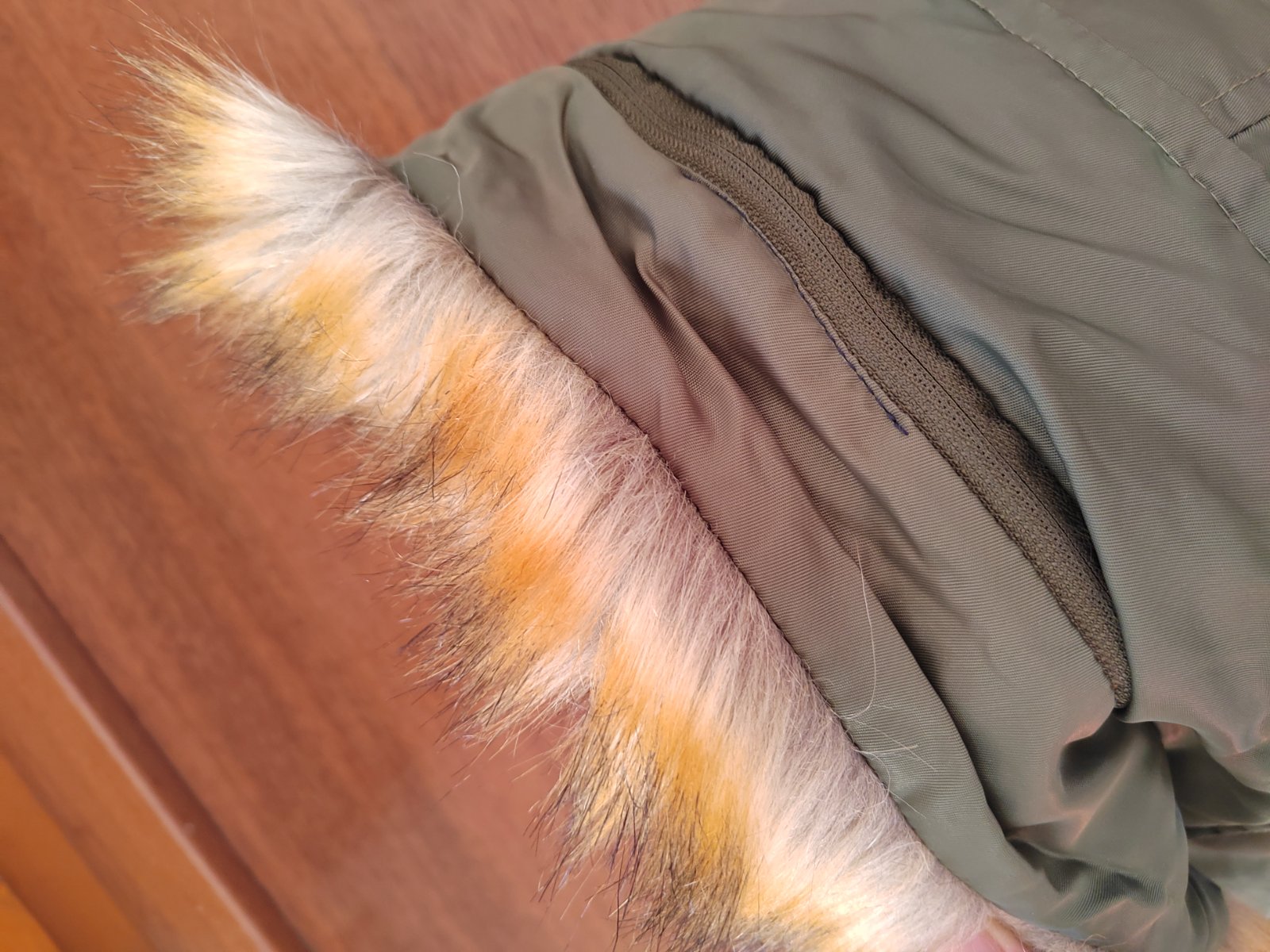 Zips trochu šuchnutý a na zadnej (spodnej strane) kapucni trochu vypáraná nitka, čo nevidieť, kým sa nezodvihne kapucňa.