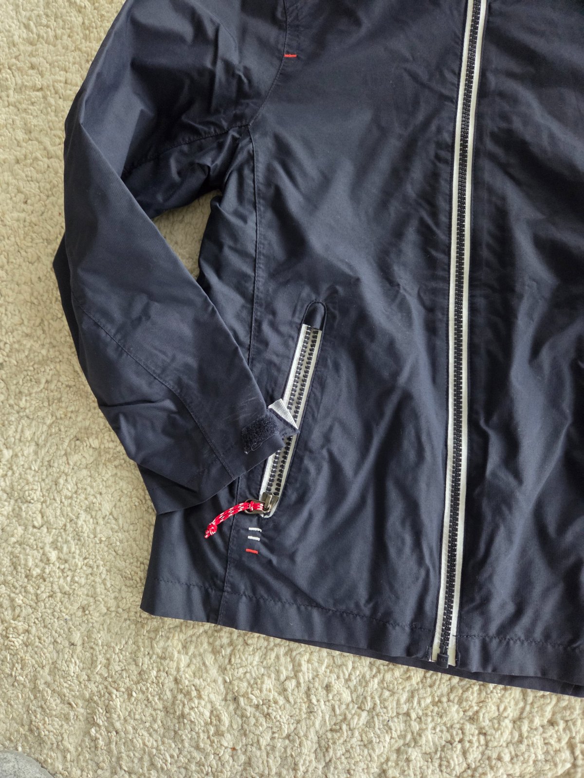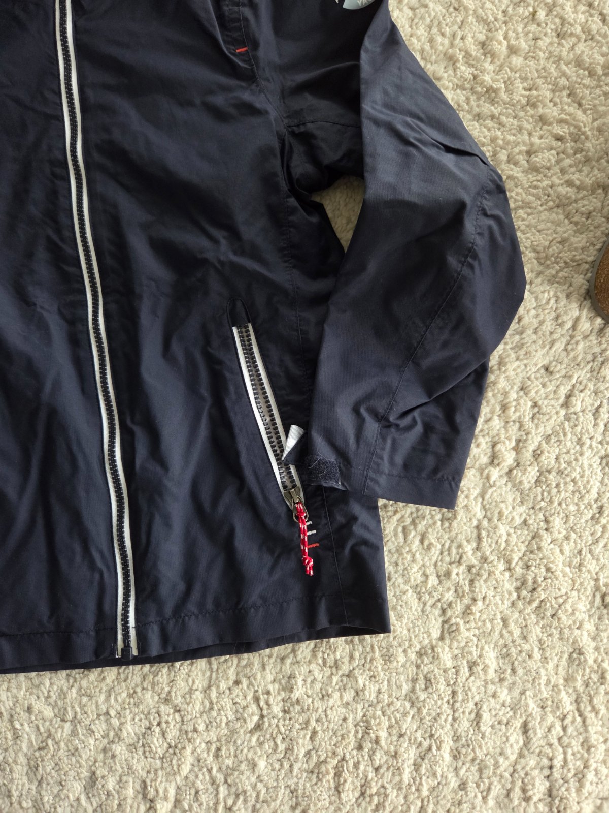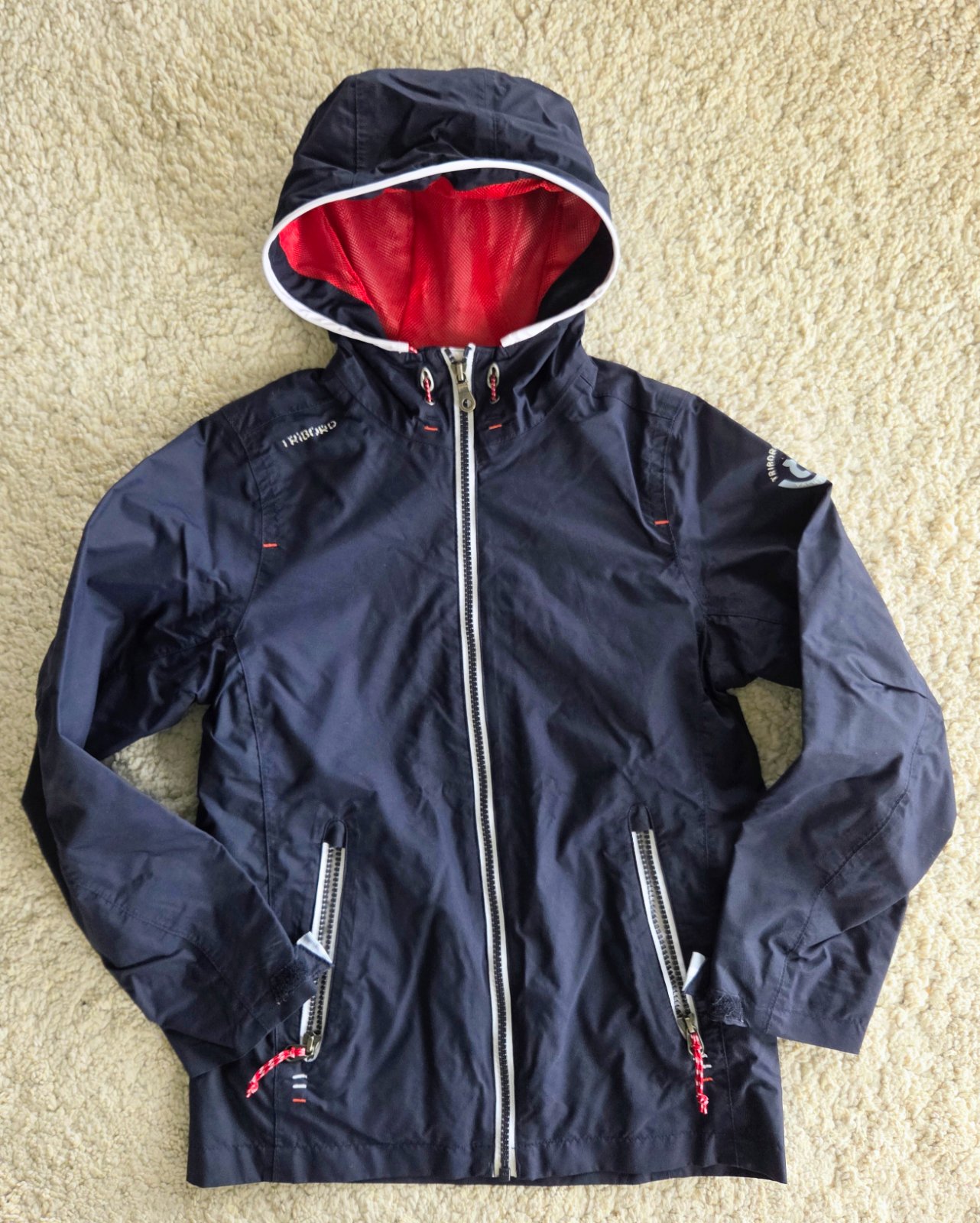 Uzasna nepremokava a neprefukava bundicka z decathlonu, paradna na prechod obdobie, kapucka, vrecka. Na 10 rokov, cca 128 velk. Krasna modra farba, bezchybna,zipsy plne funkce.Bez dier. Celkova dlzka 56cm,dlzka rukava od krku 57cm.