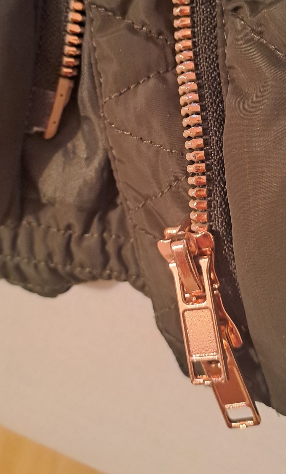 Bunda je nosená, nemá poškodenia. Materiál je hrubá bavlna, nie šušťak. V páse trochu sťahuje guma, vpredu vrecká, celá podšitá, kapucňa napevno. Výrobca Peppert, veľkosť 164. D: 85 cm, š- 50cm, r...