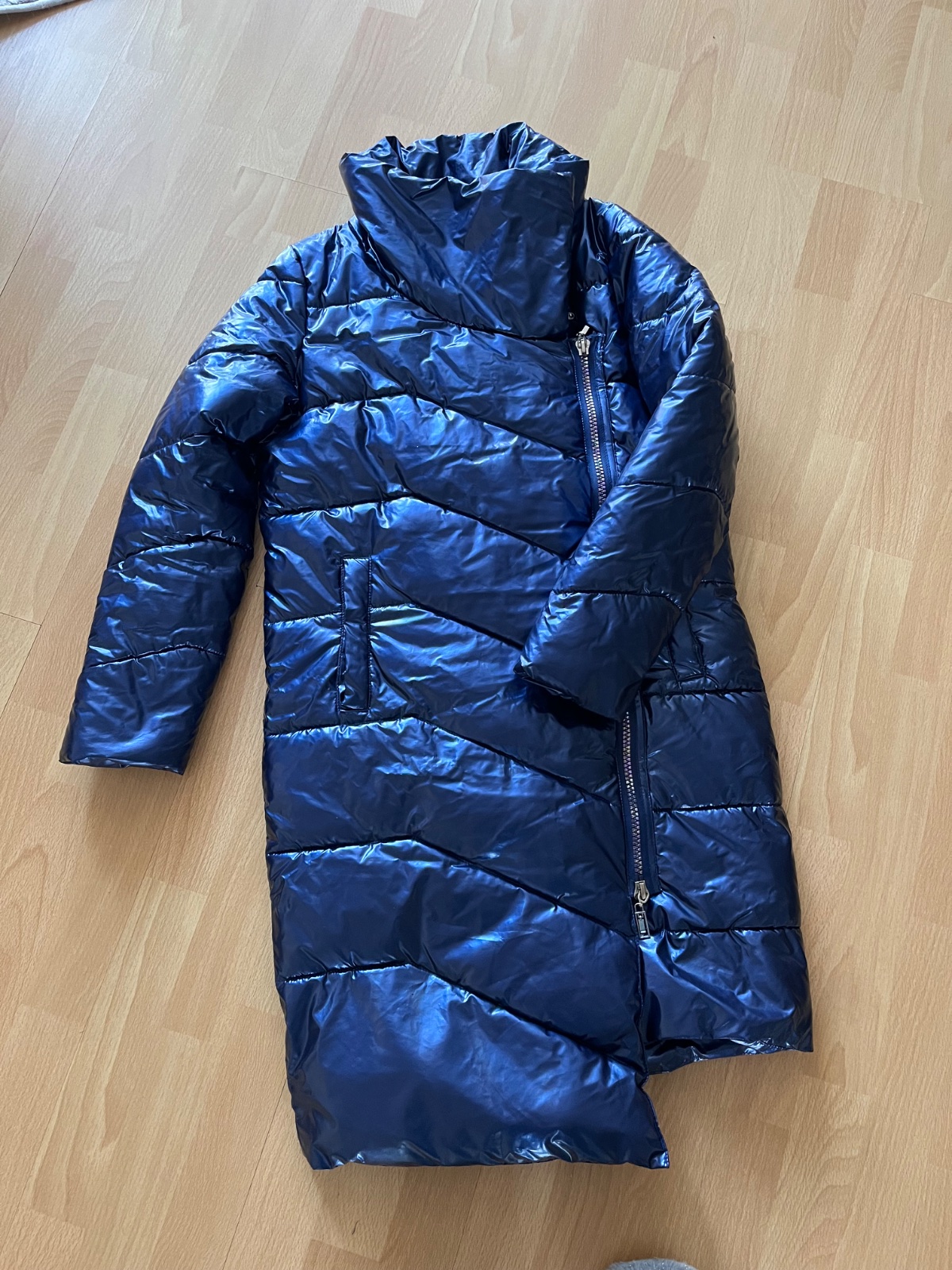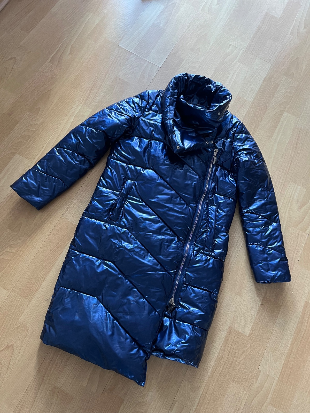 Krásna zaujímavá bunda/ kabát vo výbornom stave bez poškodení vo farbe electric blue. Do miernejšej zimy. Veľkosť 32/ také XS. Značka Mohito.