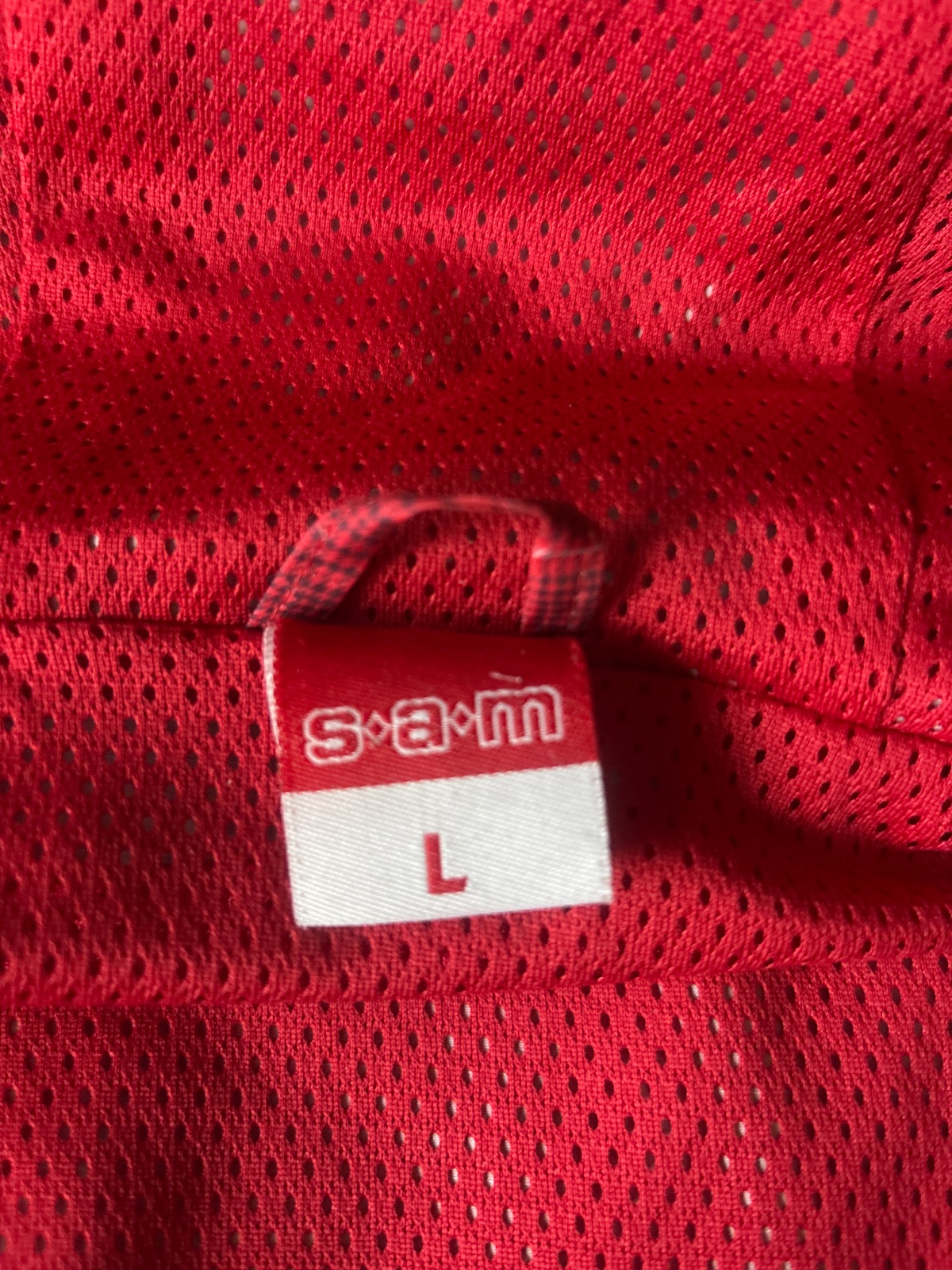 Krásna znafková bunda zn. SÁM, veľkosť pánske L, malo nosena, bez poškodenia, všetky zipsy funkčné, so sieťovinou podwvkou. Krásna červená farba. Cena 9 eur + pošta
