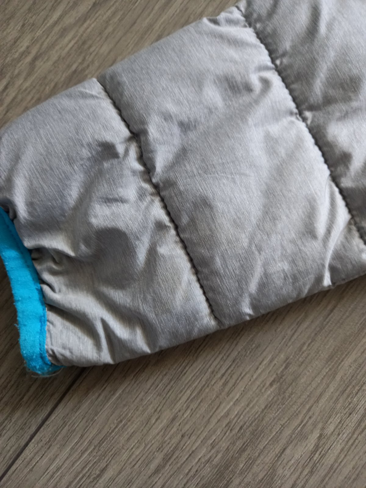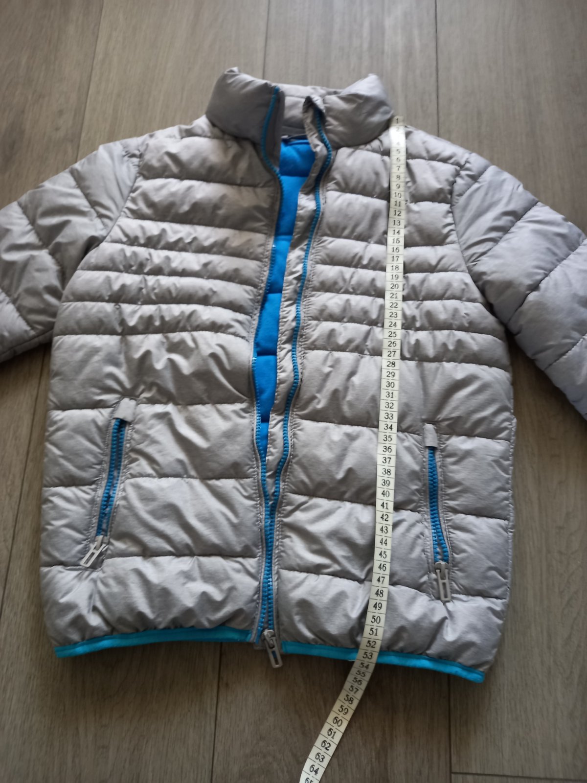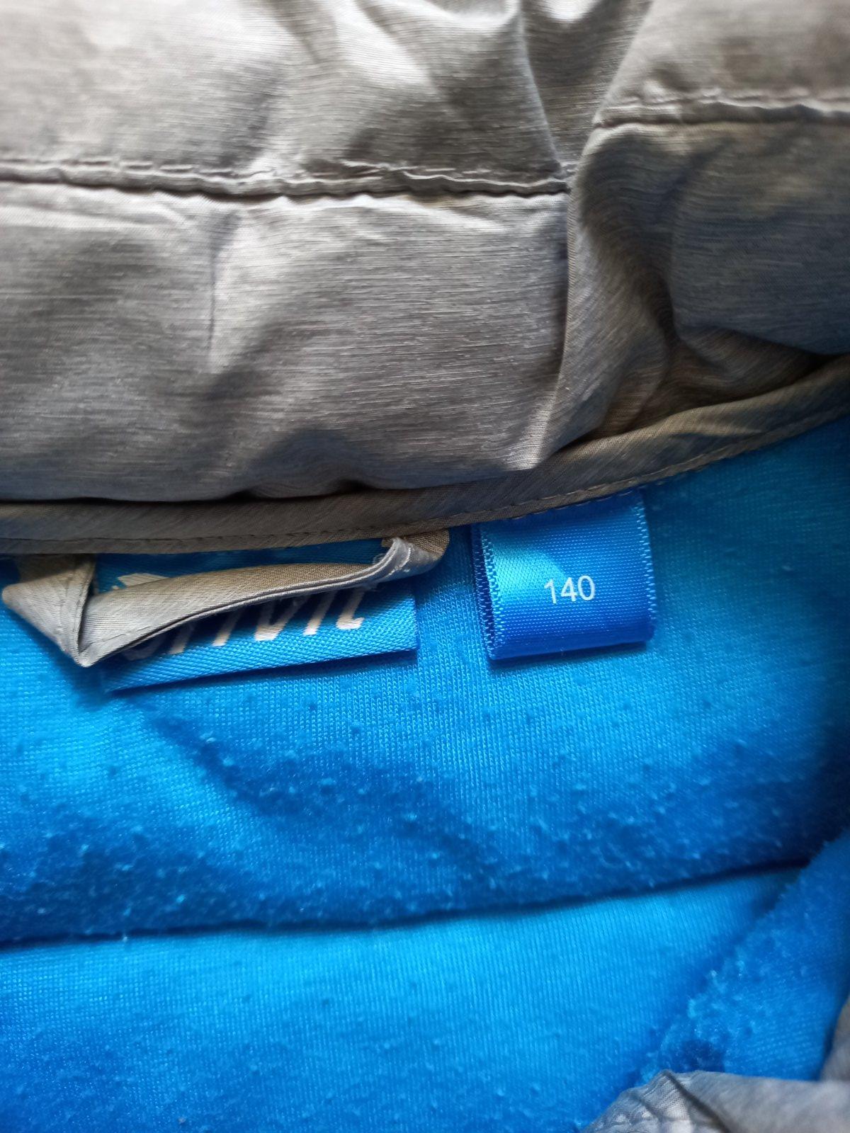 Bez poškodení, prechodná bunda, poštitá, vel. 140. Celková dľžka je 55 cm.