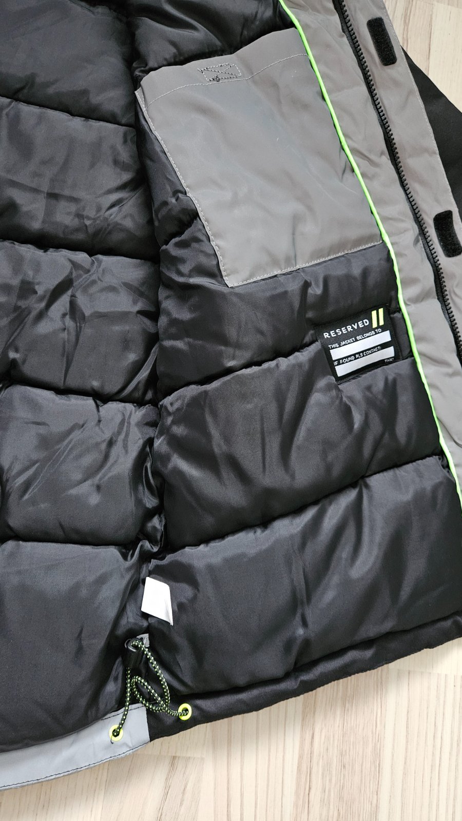 Je zateplená, hrubšia, synovi v nej nikdy nebola zima. Má vyvýšené zapínanie ku krku, sťahovanie na rukávoch, aj dole na bunde, kapucňa pevná.