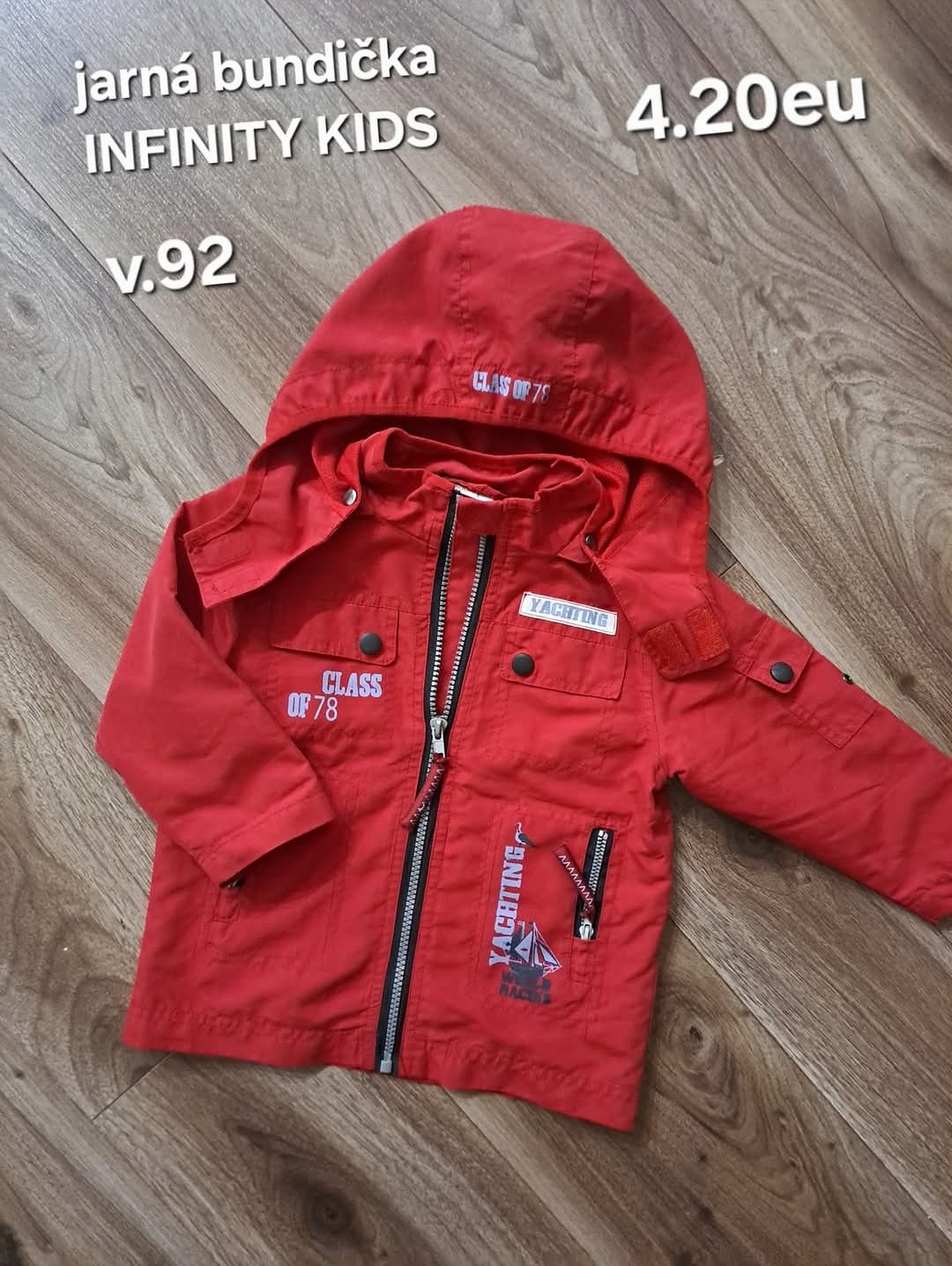 48. GEORGE prechodna vetrovka, vzadu predlžena, vo velkosti 92-98, v super stave, bez poškodení, dlžka prednej časti je 44cm a zadnej je 48cm, dlžka rukava od krku je 43cm a širka v podpazuší je cc...