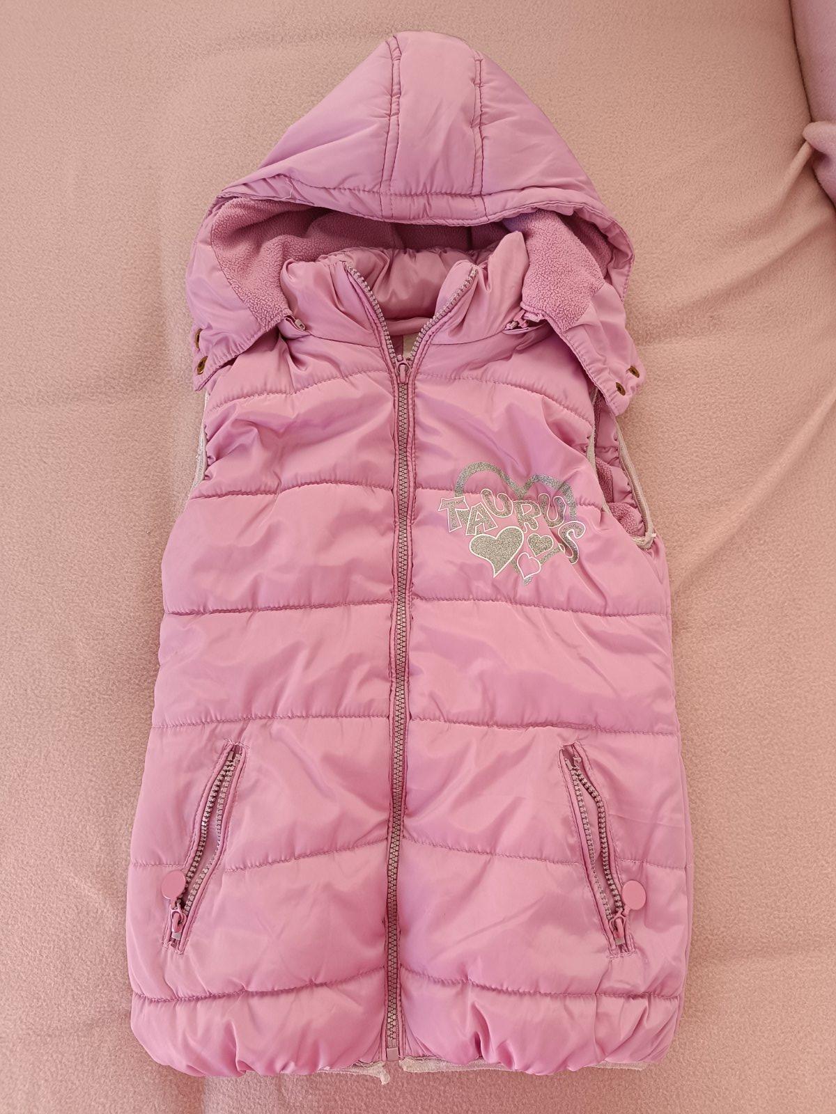 Dievčenská prechodná vesta - farba: ružová s perleťovým efektom - zn. Coccodrillo - veľ. 146 - dĺžka zadného dielu: cca 57cm, šírka prednej časti meraná pod pazuškami: cca 43 cm - málo nosená, top ...