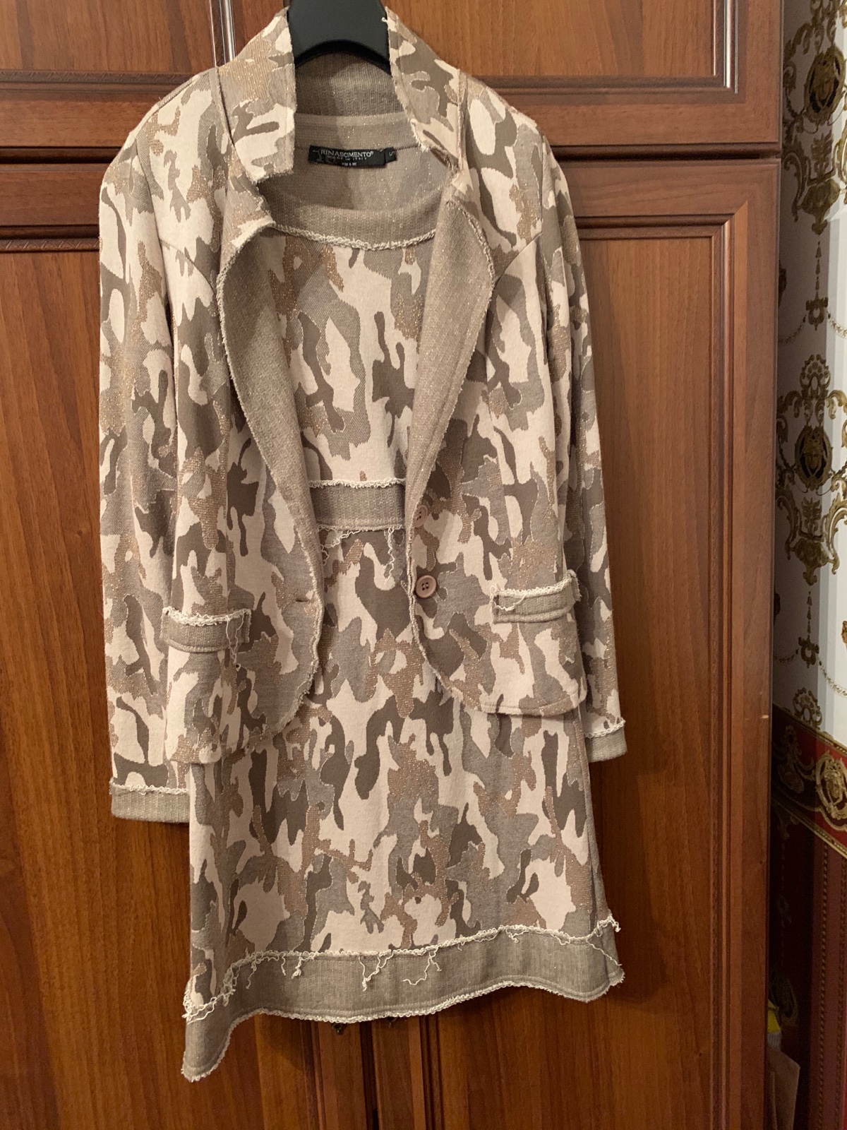 Krásne sako Rinascimento oblečené pár krát top stav. Mam k nemu aj saty bez rukávou, v prípade záujmu,predám ako komplet. Pôvodná cena vysoka. V skutočnosti je krajšia farba len mi to nejde nafotiť. Miestami vtkavane zlate nitky.