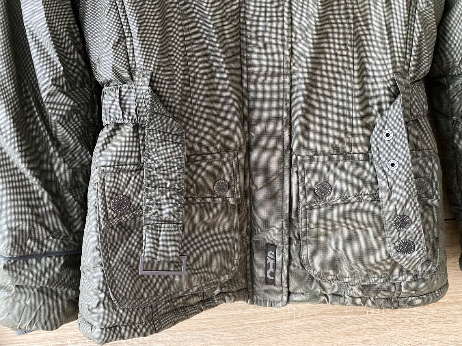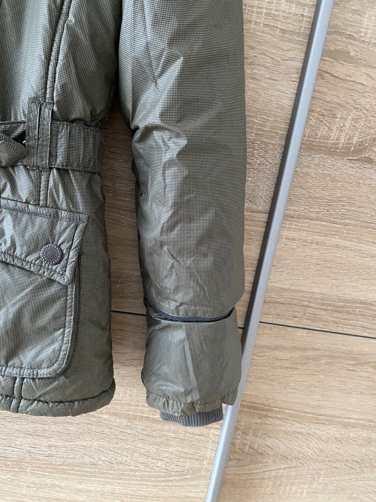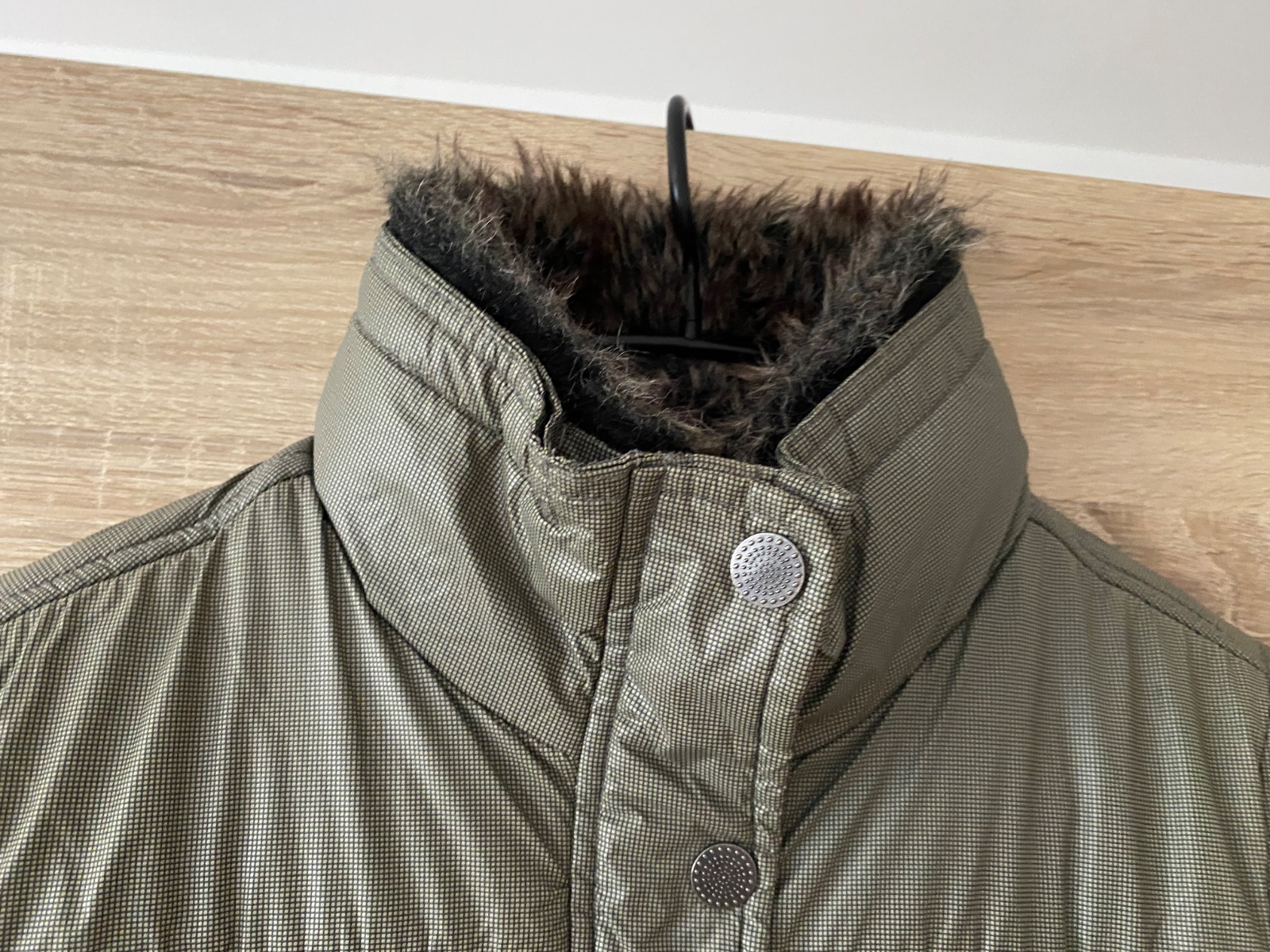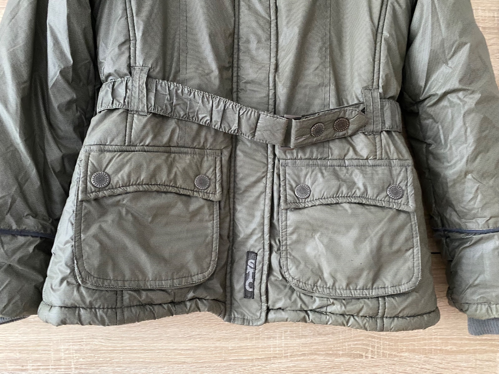 Zimná bunda značky Lovers, obvod hrude 2x46cm, dĺžka 64cm, v páse opasok zapínanie na cvok, odnímateľný kožušinový golier, na spodu rukáva všitý pružný patent, málo nosená
