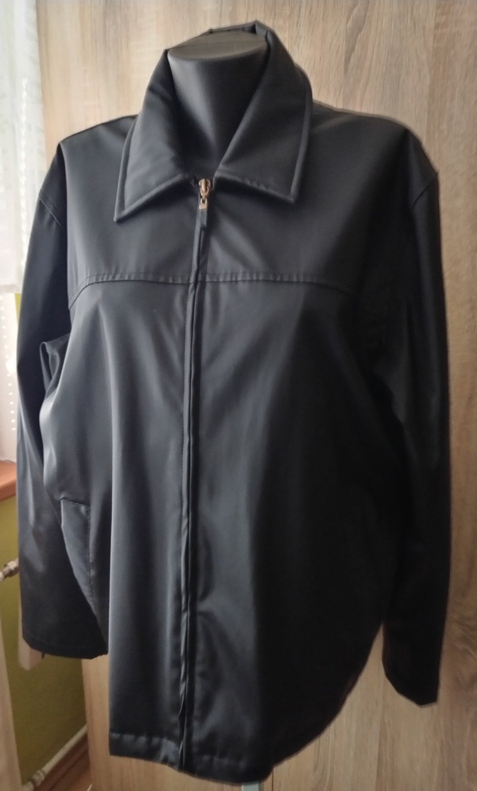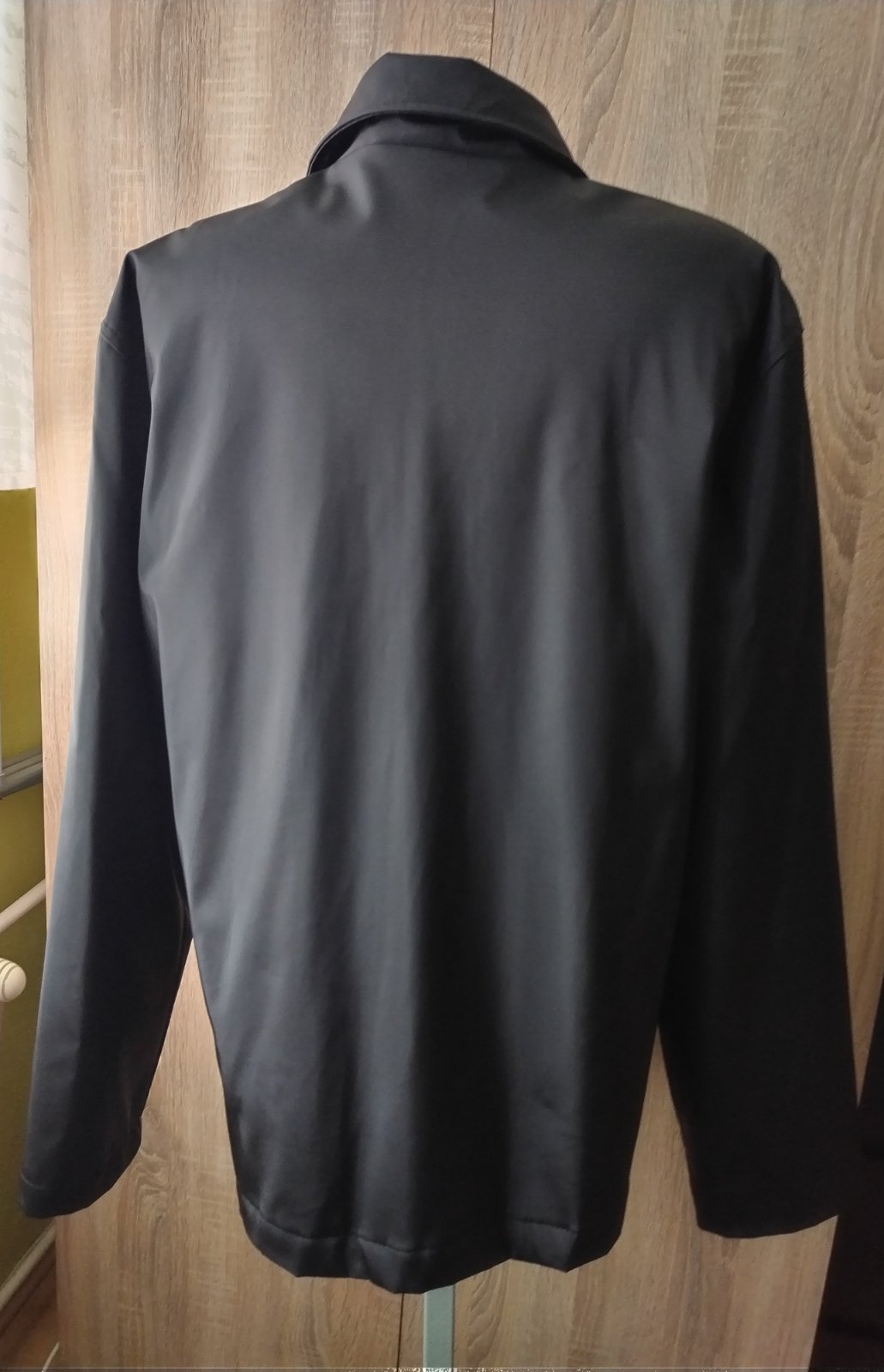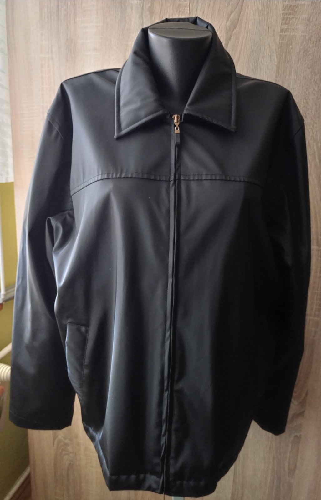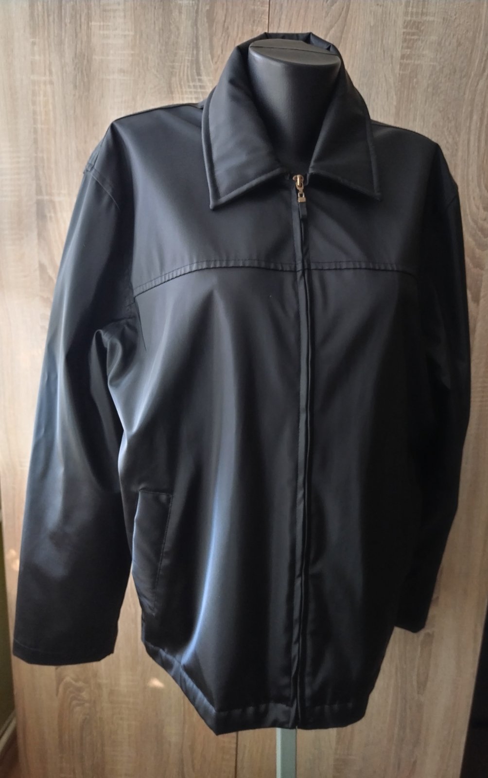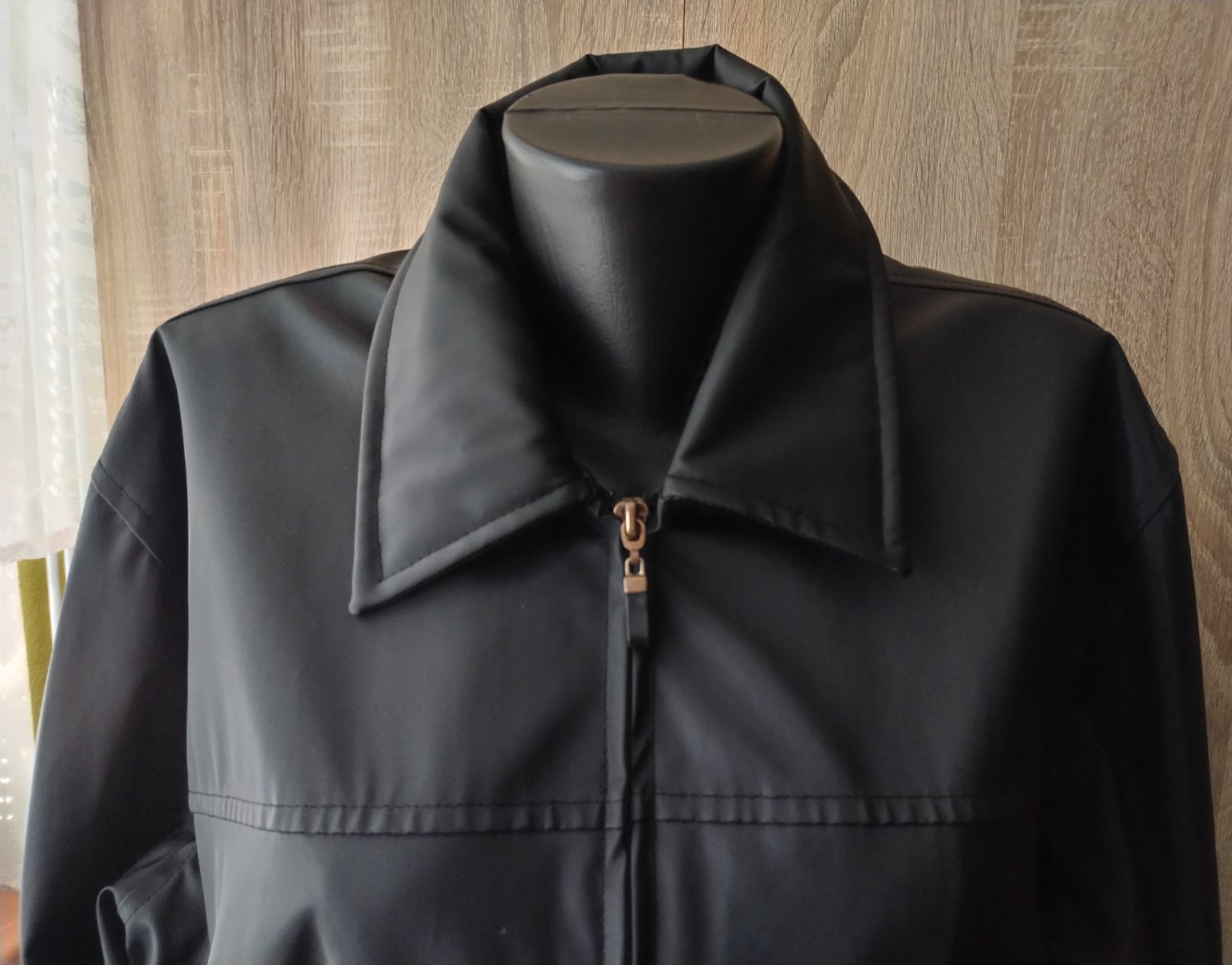 Čierna bunda, veľkosť L, mierne zateplená, vhodná na prechodné obdobie, funkčné vrecká, vnútorné vrecko, zapínanie na zips, bez poškodenia.
