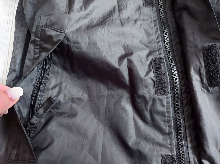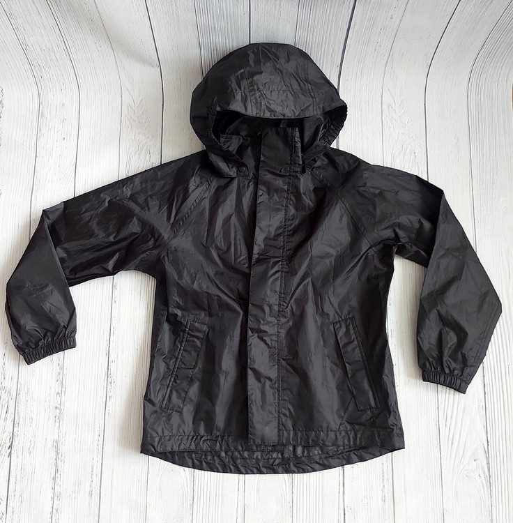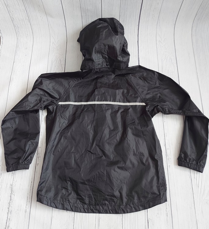 Tenká vetrovka, do sychravého počasia na sveter, mikinu alebo v lete ak zaprší. Na von, na túry, do školy a pod. Vrecká na zips. Kapuca sa dá dať dole. Vzadu je reflexný pás. Dole sú šnúrky za stiahnutie. Zložená nezaberie veľa miesta. Bunda je vo veľmi dobrom stave. Málo využitá. Veľkosť pre 10 ročných. Dĺžka od pleca 58cm, pod pazuchou 2x49cm.