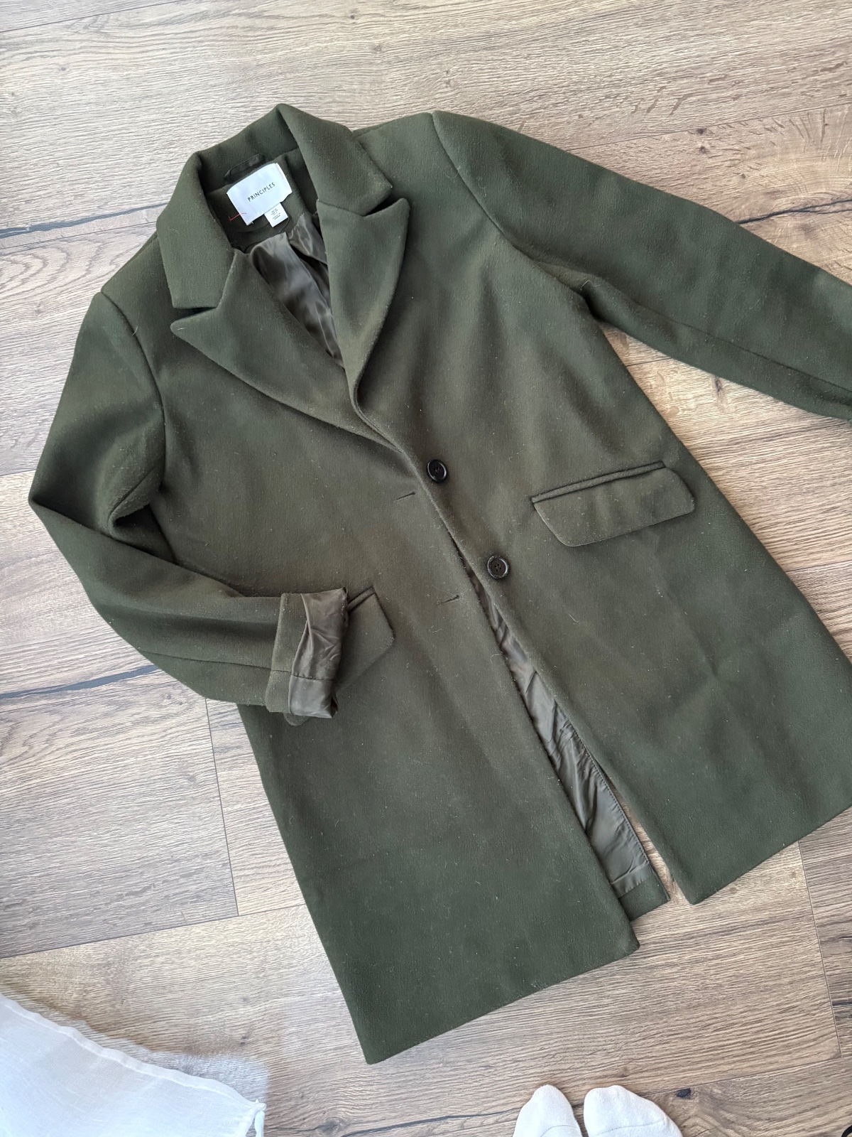 Podšivaný kabatik,vel.m.,pekne sedi na postave,vyrazné gombíky,balonové rukávy. Stav ako novy...opasok si možte doladit podľa seba....pekny kusok..