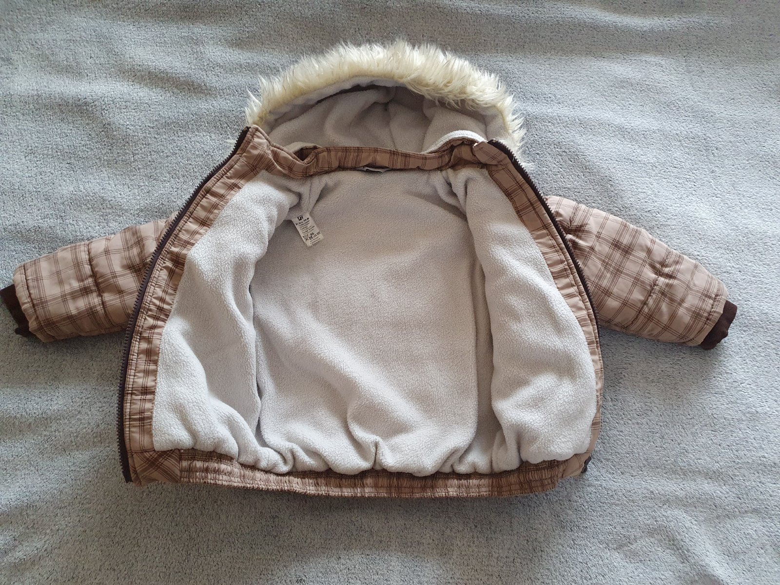 Zimná bundička, mäkká, vyteplená, odopínacia kapucňa.