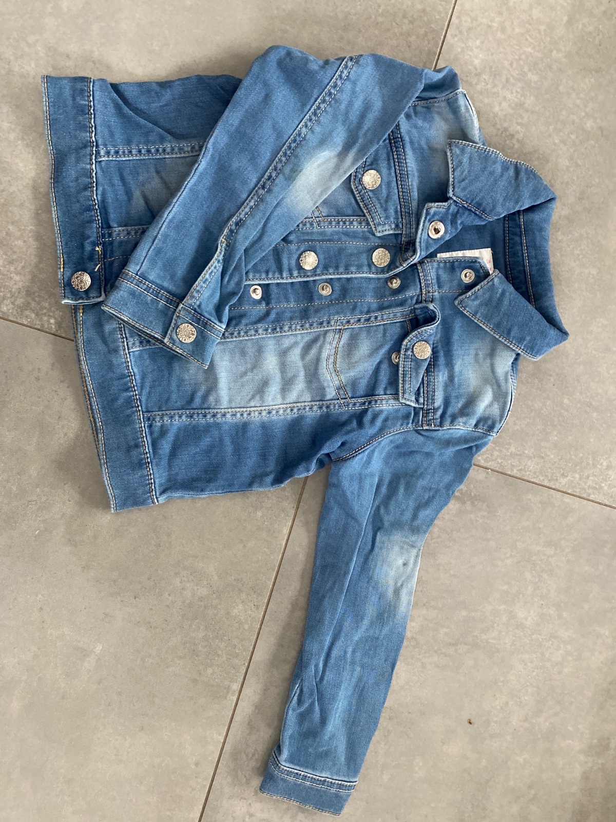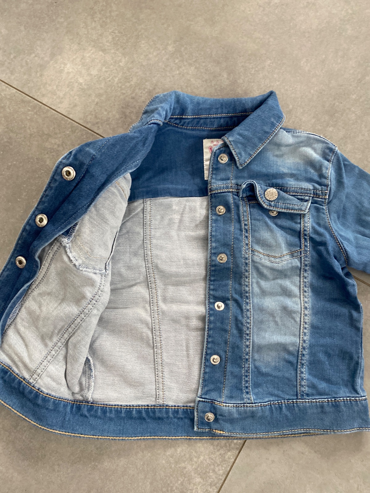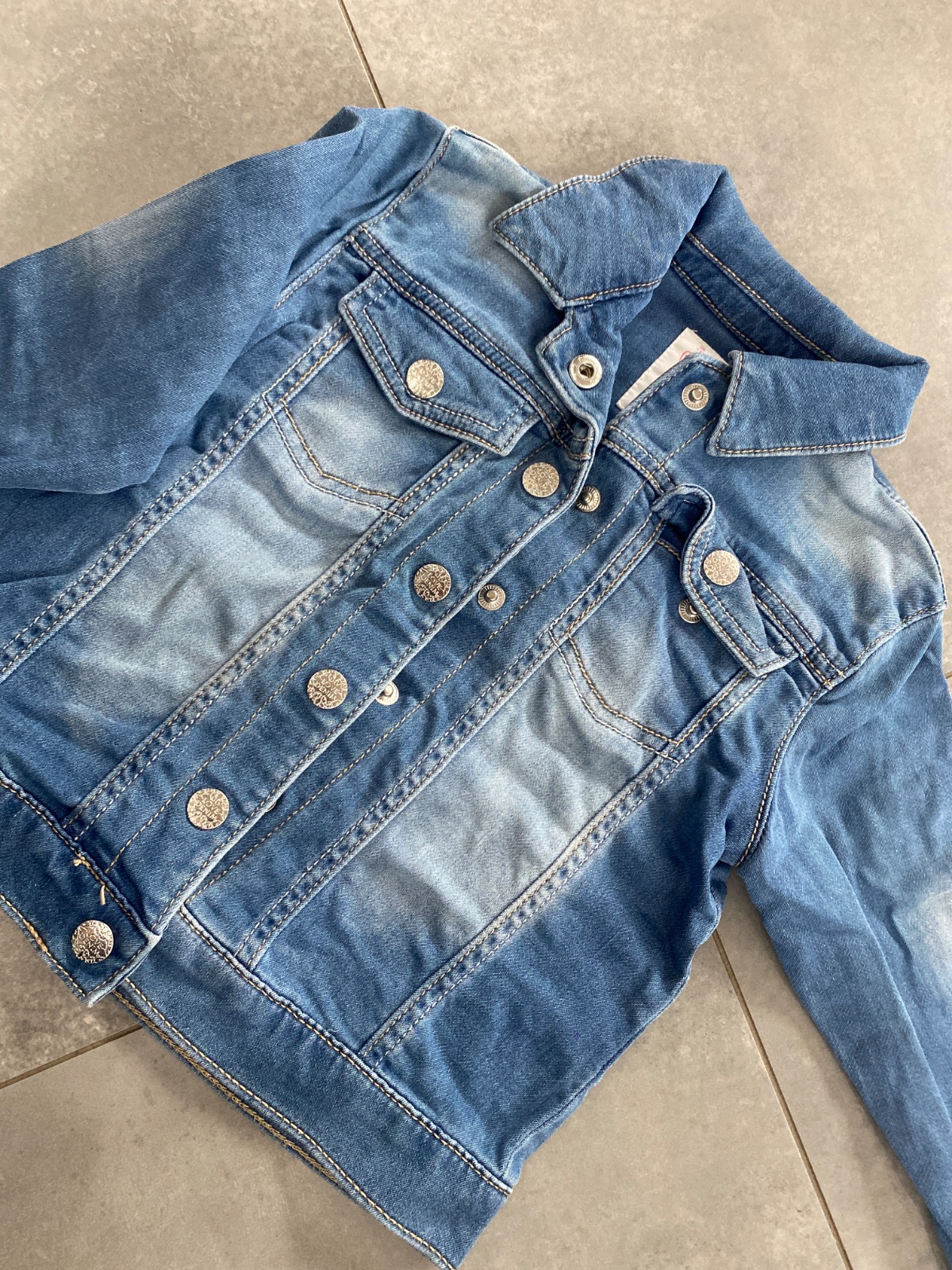 Predám veľmi peknú zachovalú detskú rifľovú bundu. Je ako nová žiadne poškodenia. Veľkosť 110 cca 4-5 rokov.