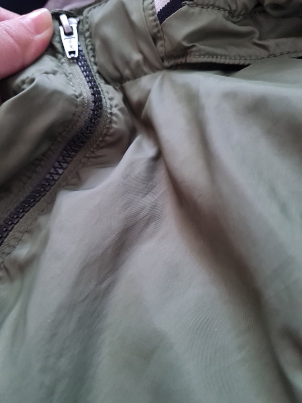 Krásny dievčenský kabátik vojenského typu, s kapucou, vzdušný kvalitný materiál, zapínanie na zips, dve vrecká, vo výbornom stave