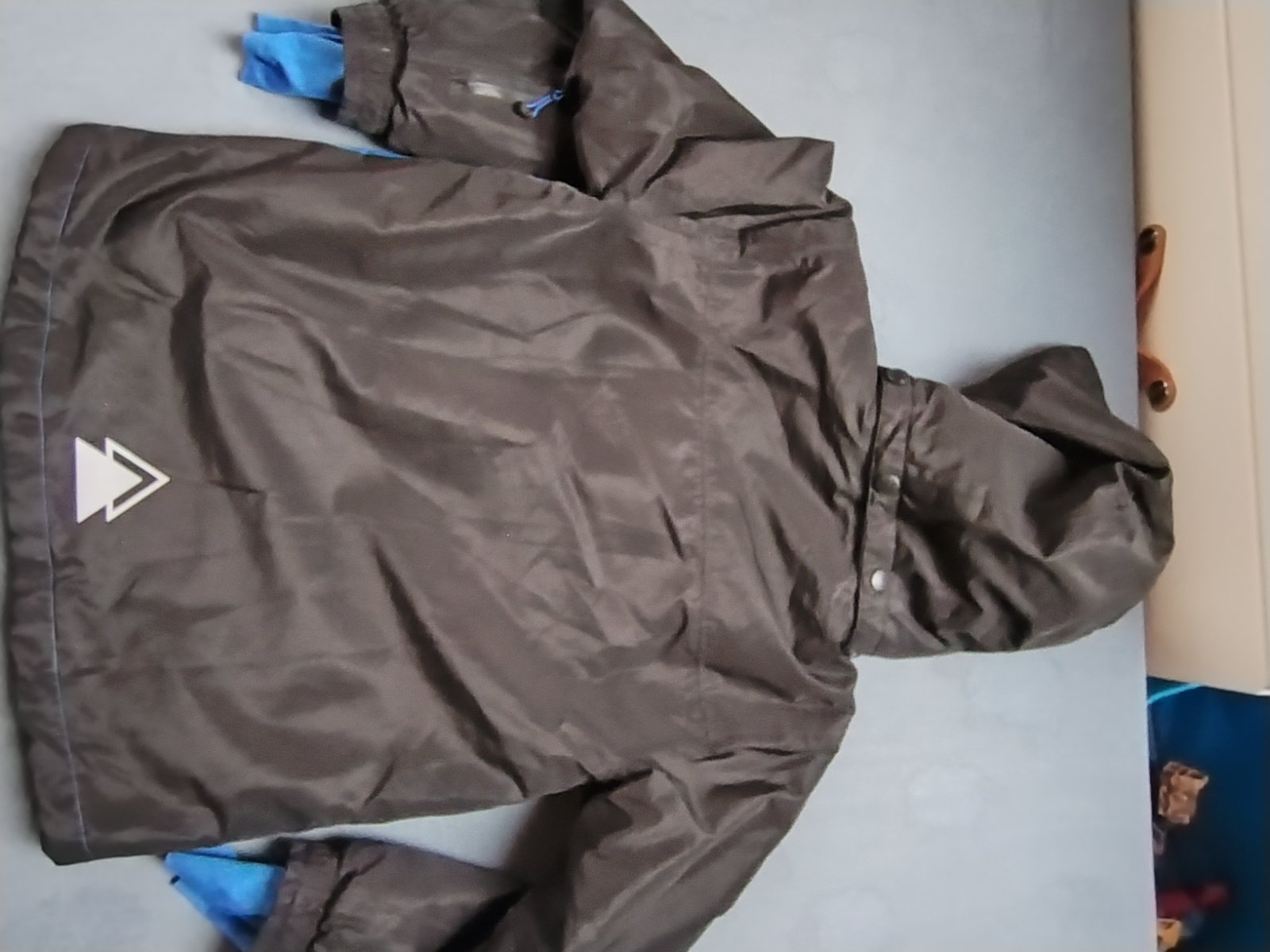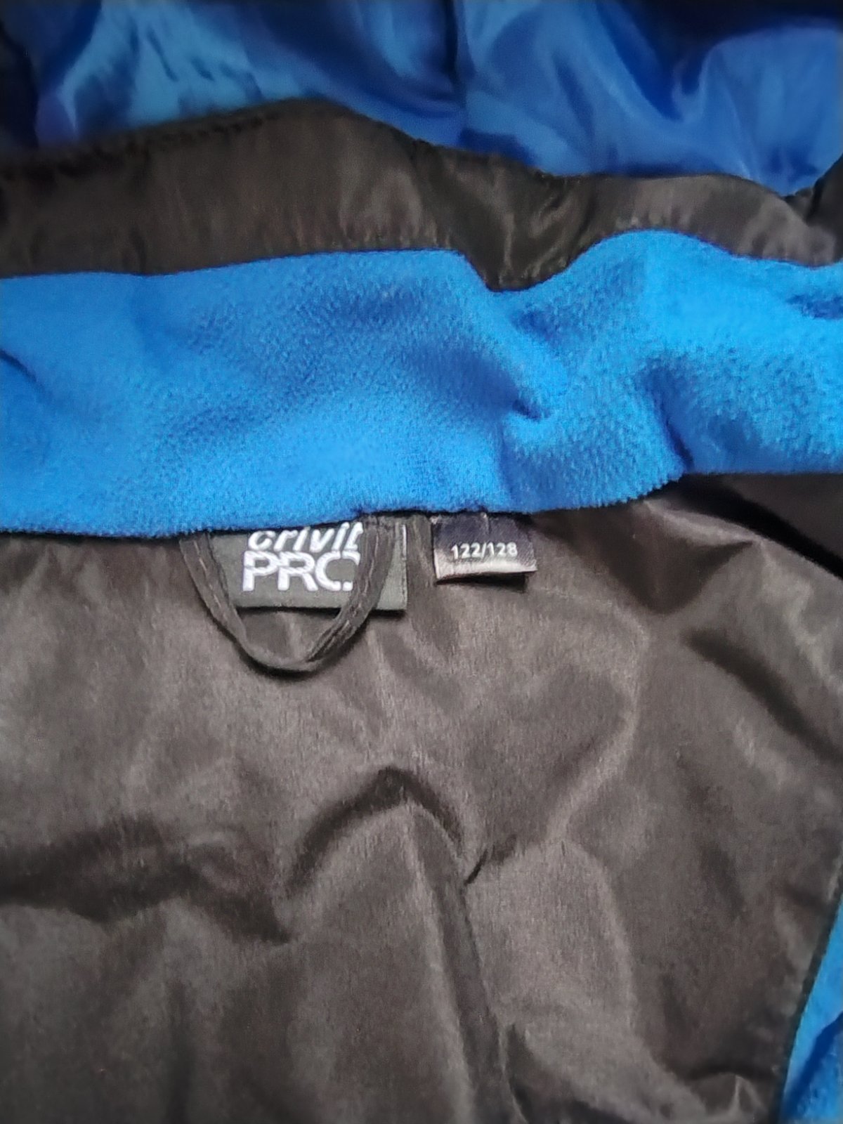 vel. 122-128, chýba kapucňa, vnútri rukávov všitý patent proti snehu, vzadu reflexný prvok, vnútri bundičky 2 vrecká, 2 vrecká vpredu na zips, ktorý je krytý, vnútri zapínací pás na zachytávanie sn...