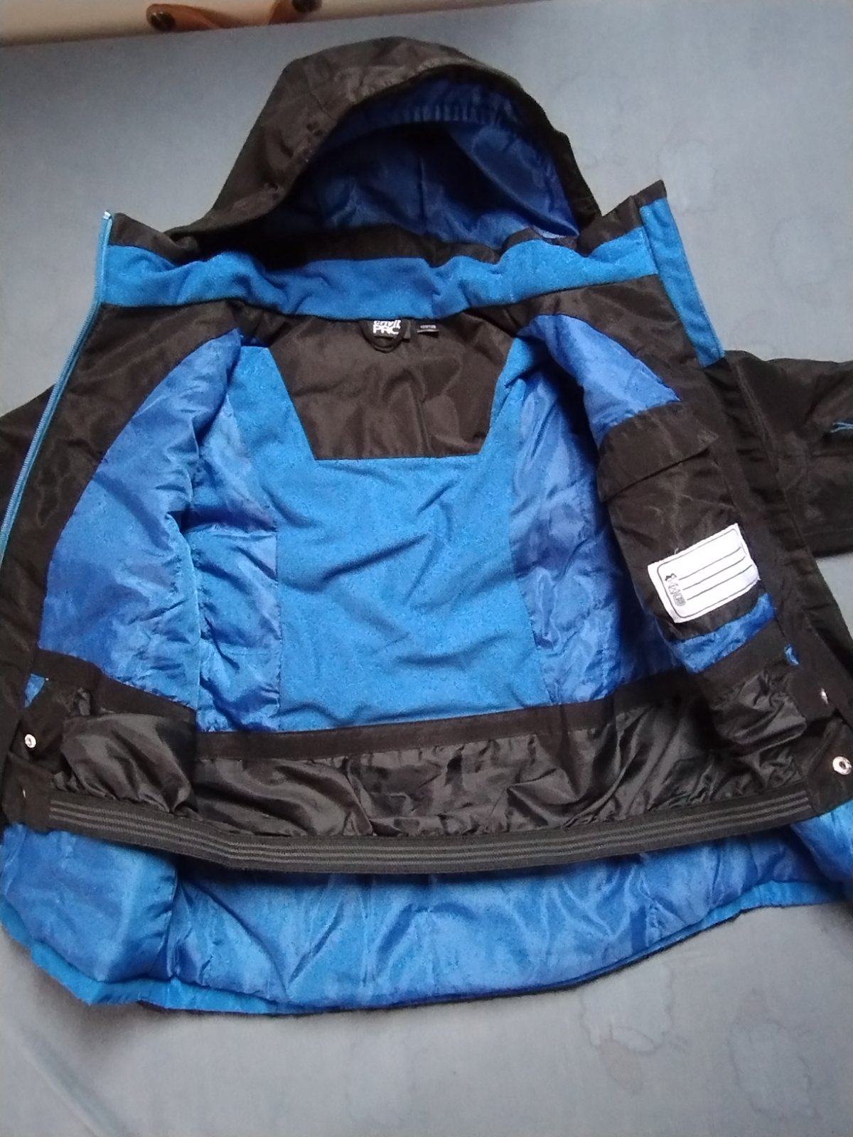 Lyziarska bunda, nosena a ma aj drobne poskodenia, ktore na funkcnosti neuberaju a su zohladnene v cene. 122-128 Dlzka 50, sirka 39
